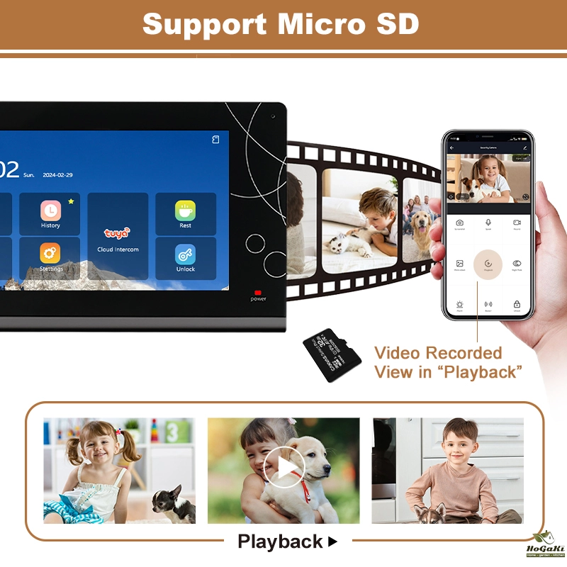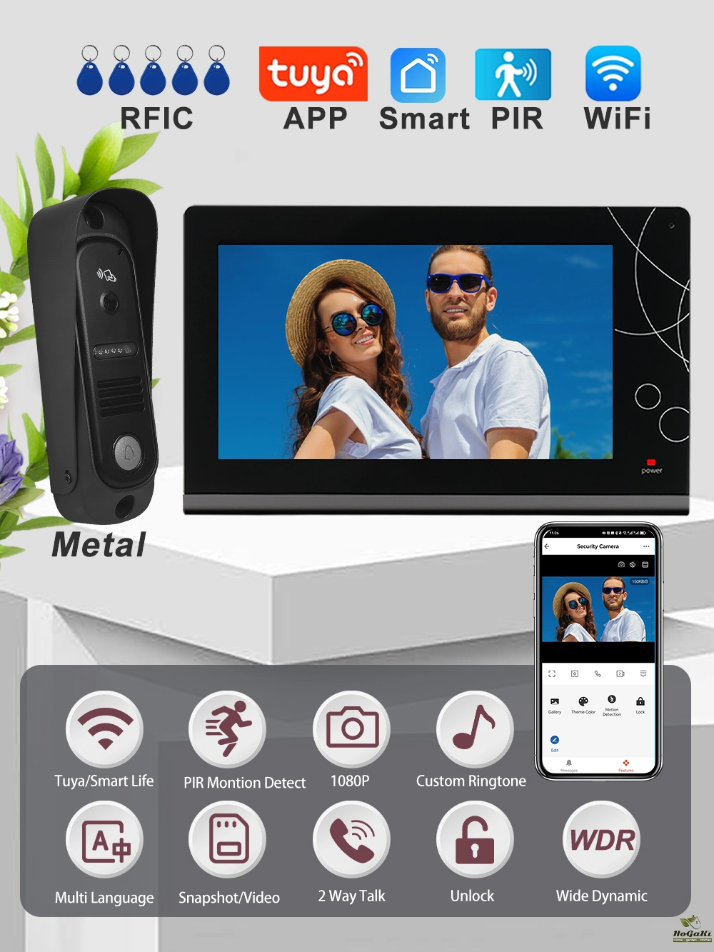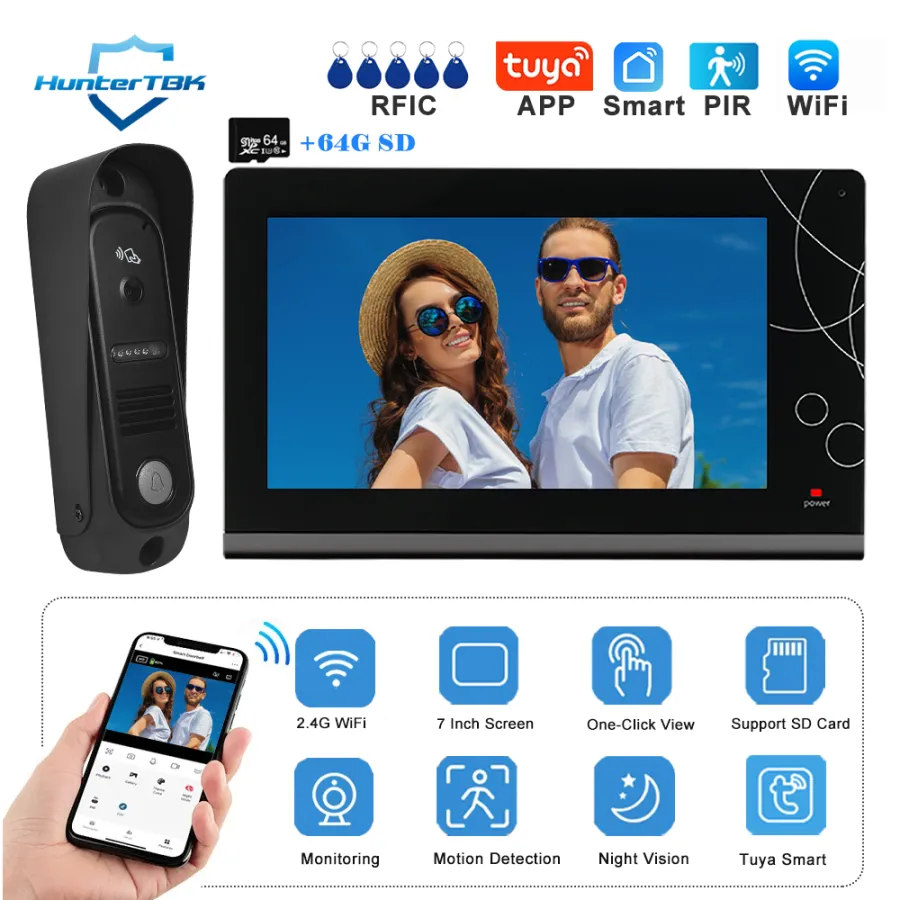 7 Inch TUYA APP 1080P Wifi 4 Wire Touch Screen Video Door Phone Intercom System with Wired Doorbell APP/Card Unlock