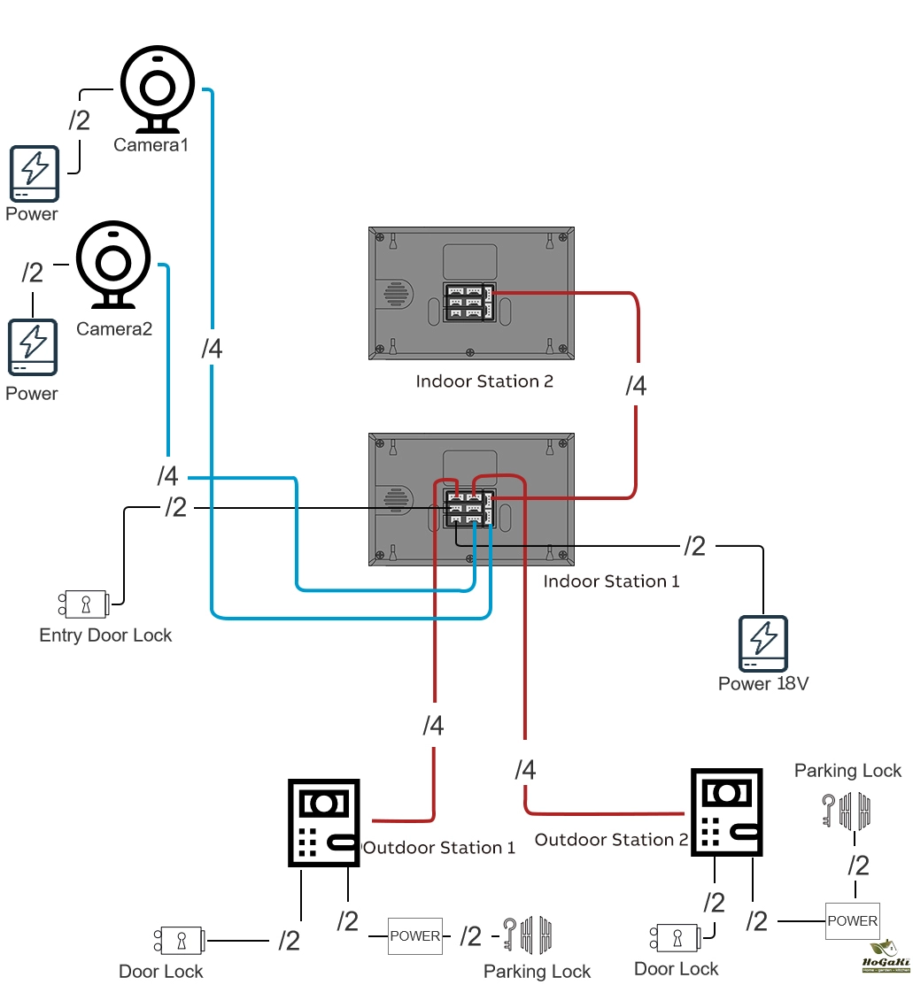 Topology ( 2 Outdoor Station + 2 Indoor Monitor)