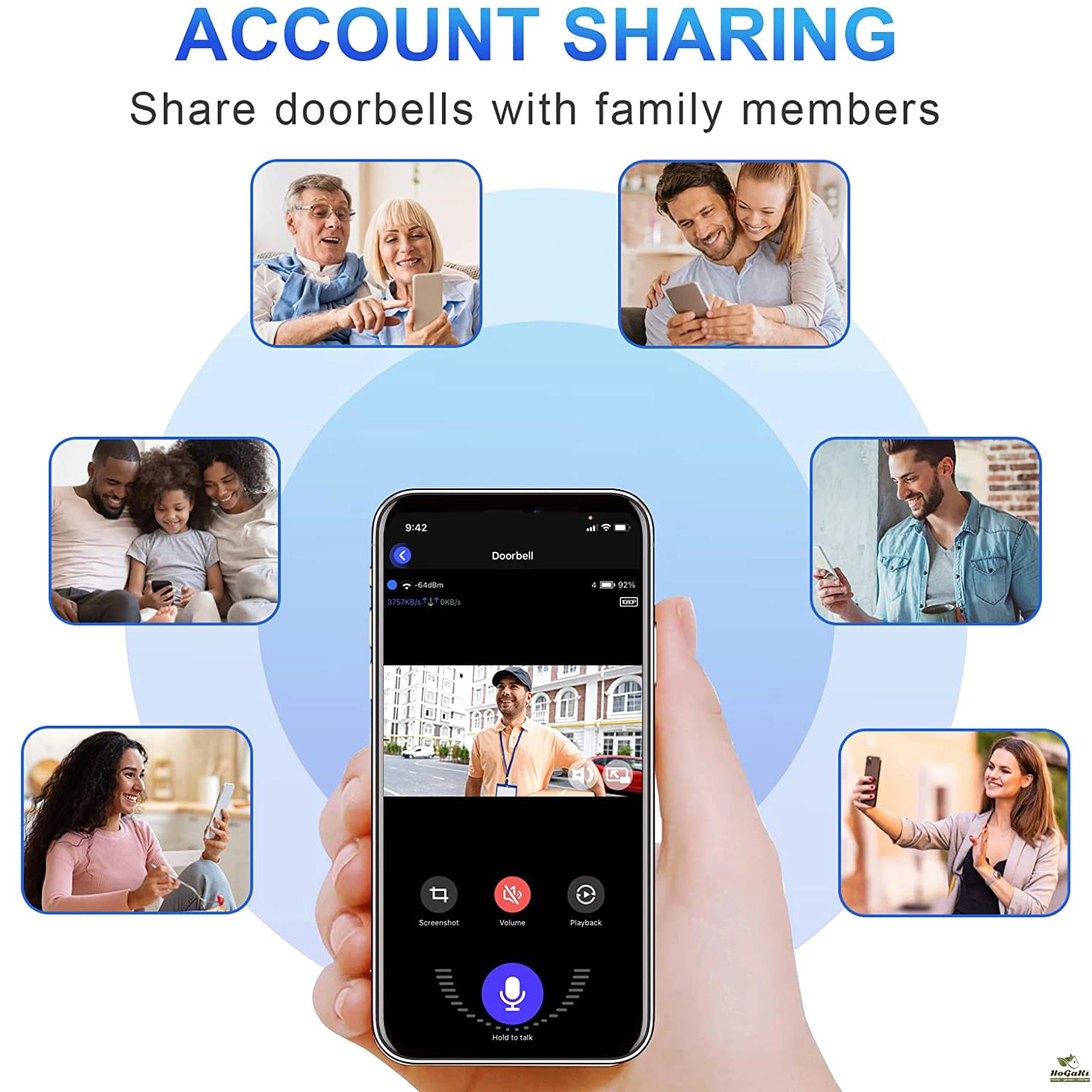 【Support Shared Multi-Users and Easy installation】The camera doorbell supports multiple device sharing. You can authorize others to monitor by downloading the smart app on their devices. Allow all your family members to monitor the security of your home. Easy to set up according to installation instructions. Use the matching screws to punch holes install. This wireless home security doorbell takes less than 5 minutes to set up without having to use any complicated tools.