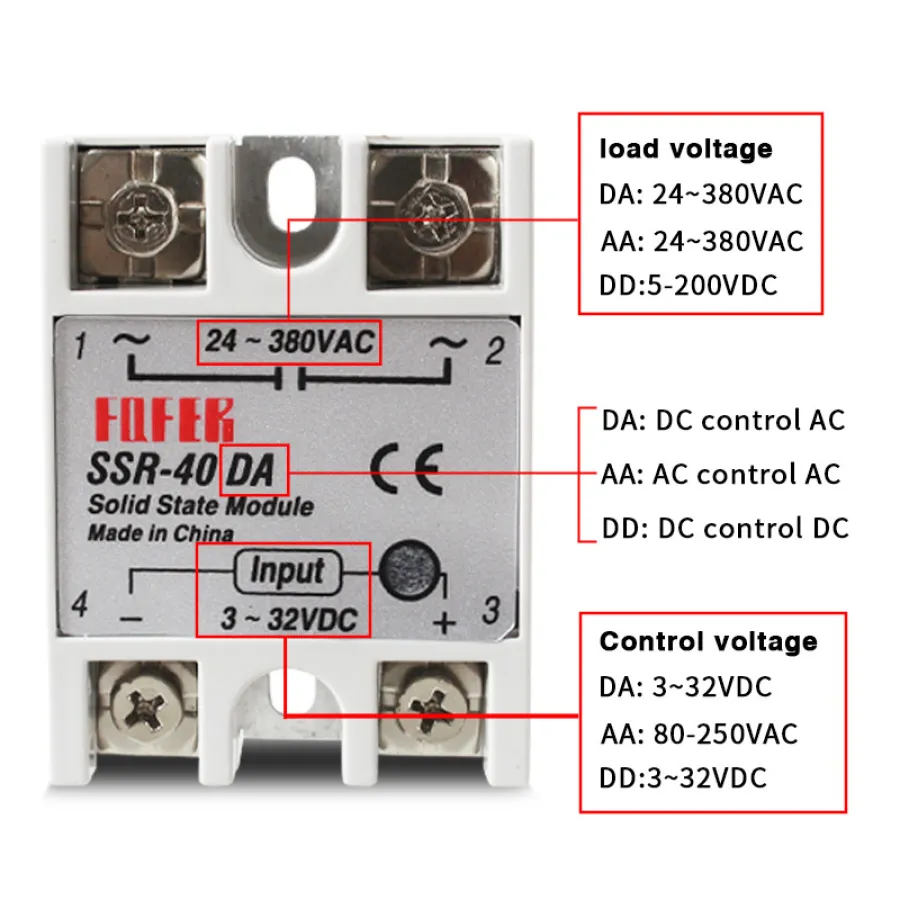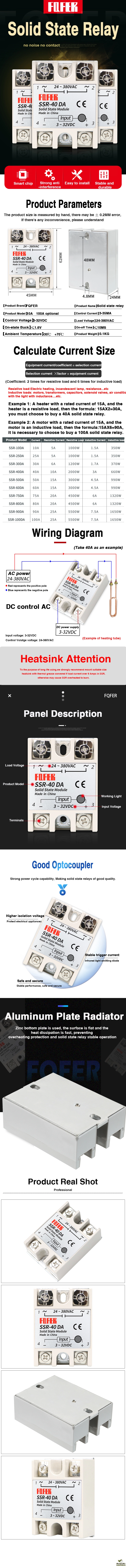 SSR-10DA SSR-25DA SSR-40DA 10A 25A 40A Solid State Relay Module 3-32V Input DC 24-380V AC Output High Quality