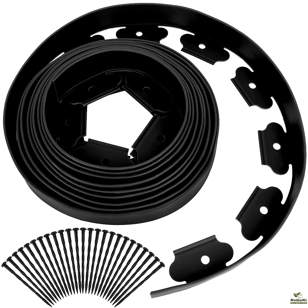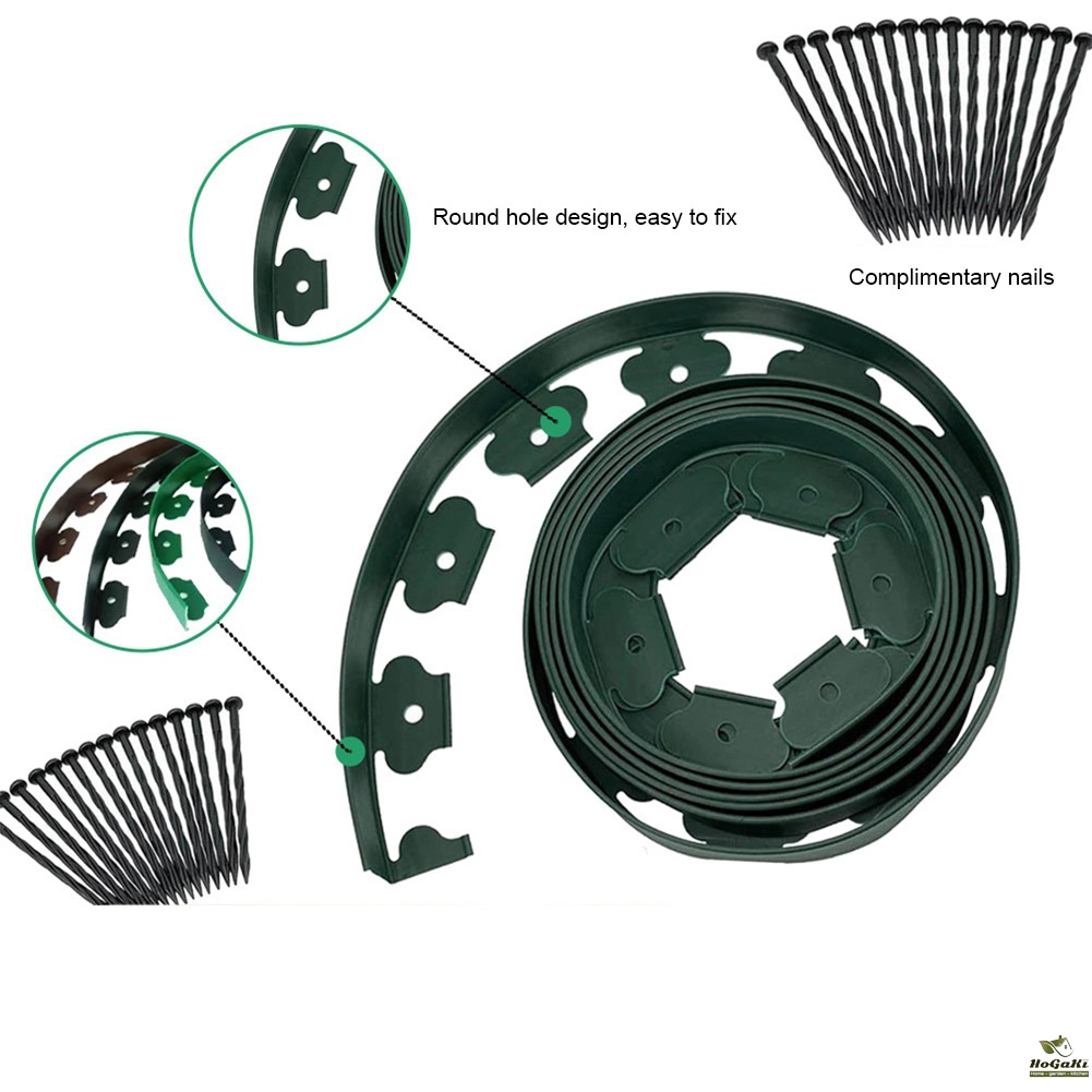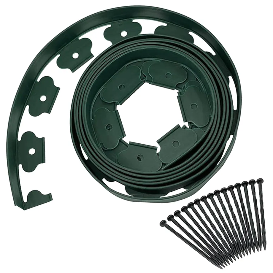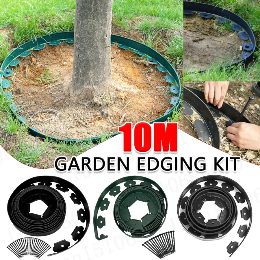 10M Flexible Lawn Edging Kit with 30 Spikes Heavy Duty No-Dig Landscape Edging Garden Edging Coil for Lawn Yard Pathway Driveway