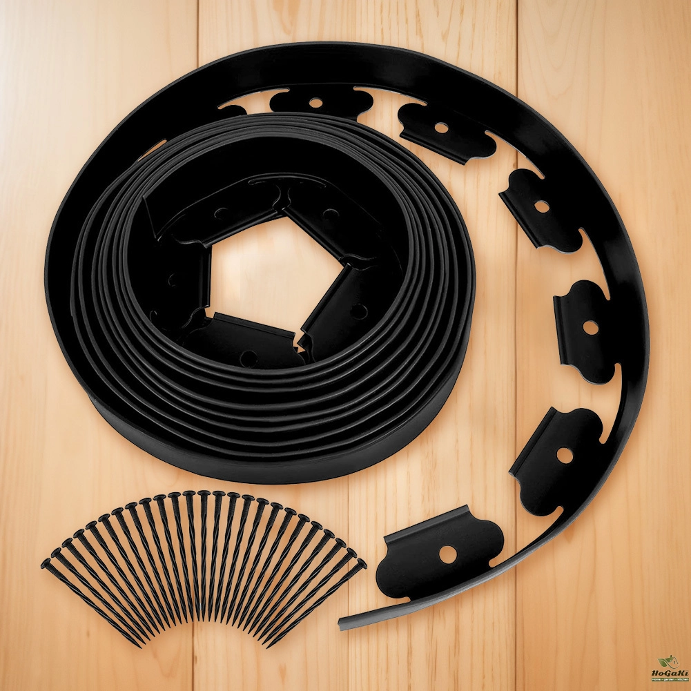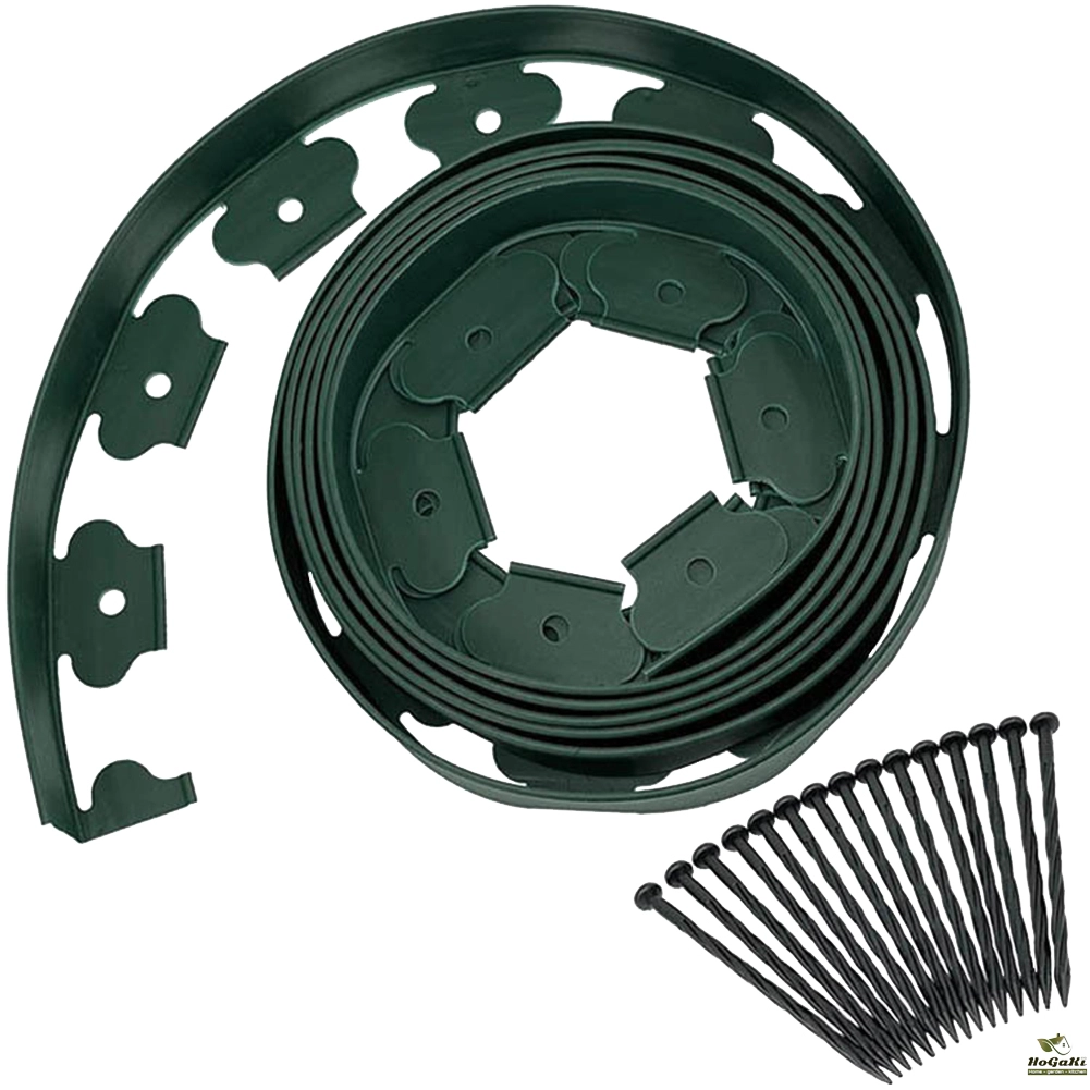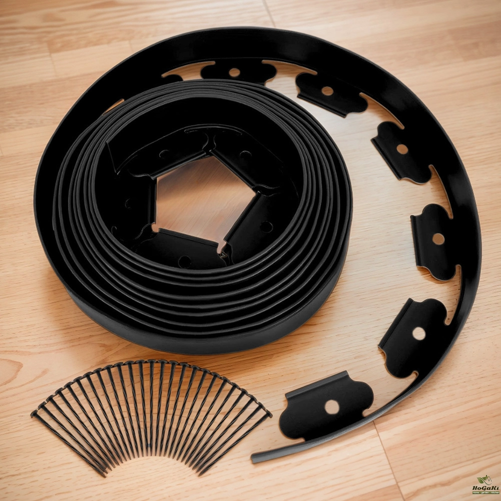 10M Flexible Lawn Edging Kit with 30 Spikes Heavy Duty No-Dig Landscape Edging Garden Edging Coil for Lawn Yard Pathway Driveway