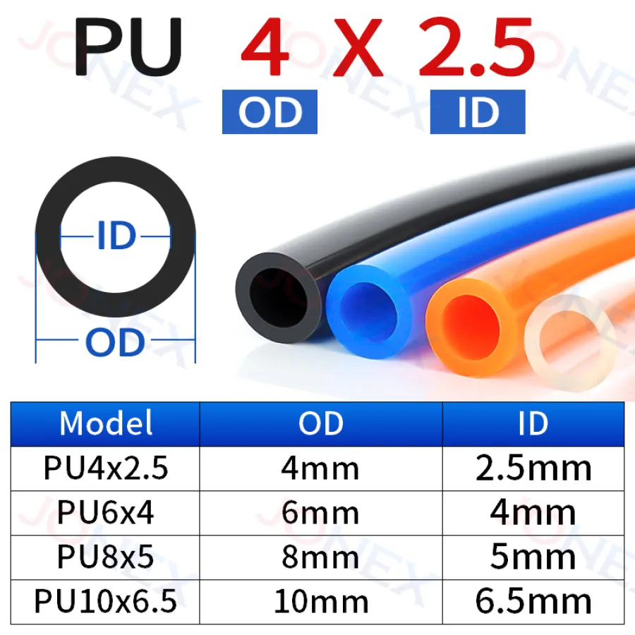 10Meter 4Mm 6Mm 8Mm 10Mm Selang Udara Pipa Tabung Pneumatik Selang Pu untuk Kompresor Hitam Biru Oranye Tabung Poliuretan Transparan