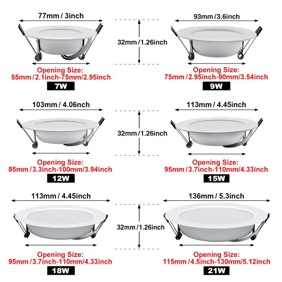 Power: 7W / 9W / 12W / 15W / 18W / 21W