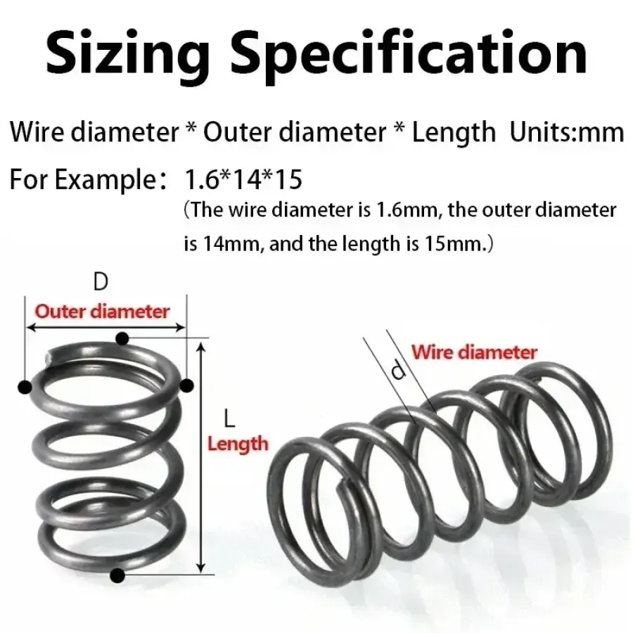 10Pcs 1.4mm Spring Steel Compression Spring, OD: 8/9/10/11/12/13/14/15/16/17/18/20/22mm, Length: 10mm-100mm, Customizable