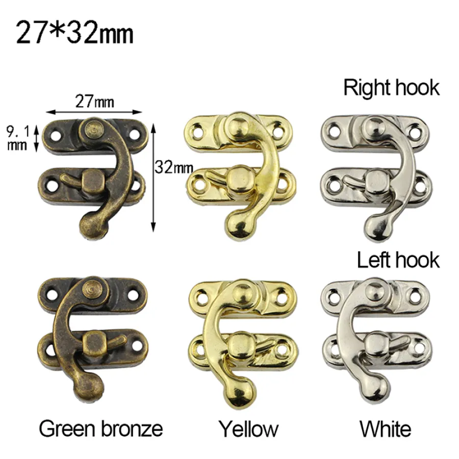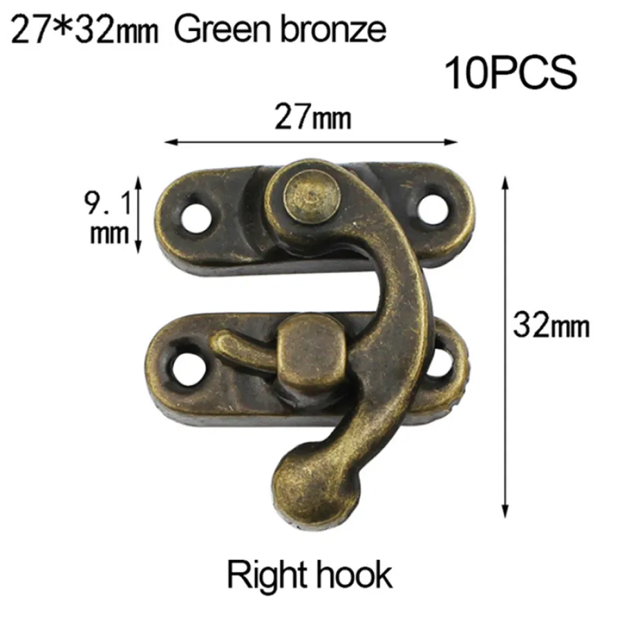 10PCS Vintage Metal Hardware Furniture Wooden Box Leather Bag Hardware Decorative Latch Clasps Lock Padlock Hasp With Screws