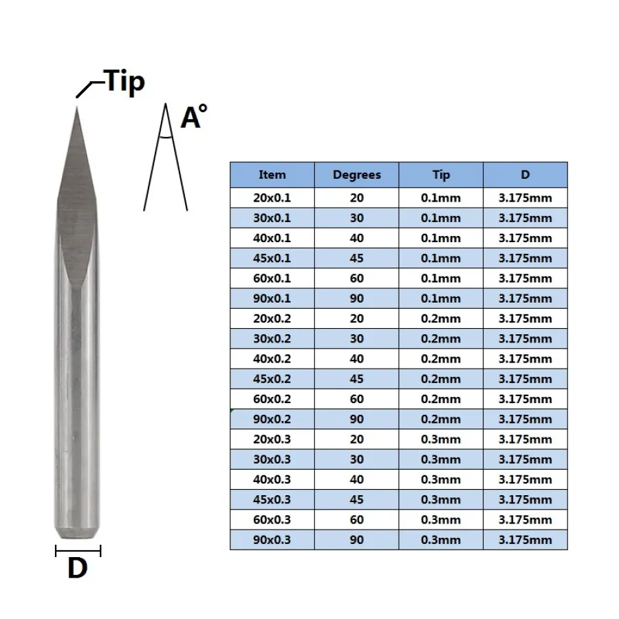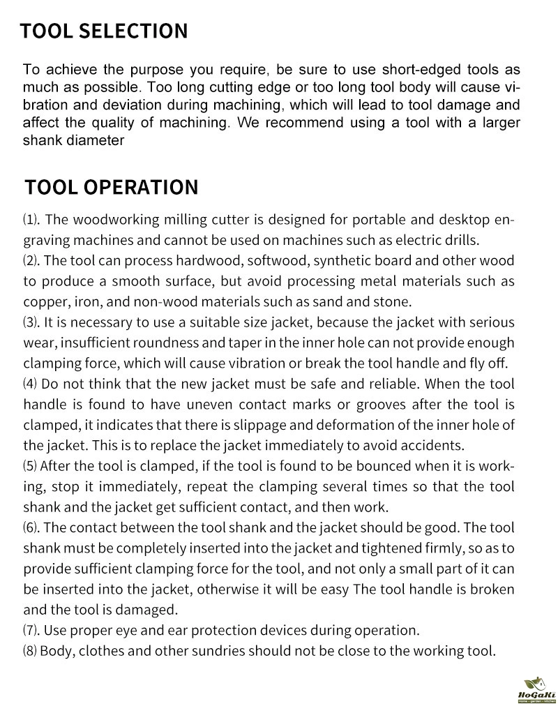 ⑴. The woodworking milling cutter is designed for portable and desktop engraving machines and cannot be used on machines such as electric drills.