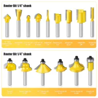 15PCS 1/4in 1/2in 6mm 8mm Shank Router Bit Set Trimming Straight Beading Milling Cutter Carbide Cutting Woodworking Tools
