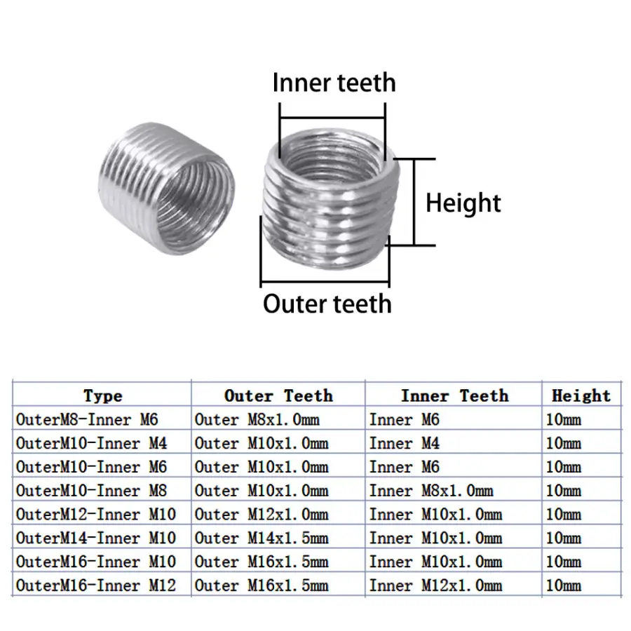 10PCS Inside Outside Thread Adapter Screw M4 M6 M8 M10 M12 M14 M16 Insert Conversion Sleeve Screw Tube Variable Diameter Nut