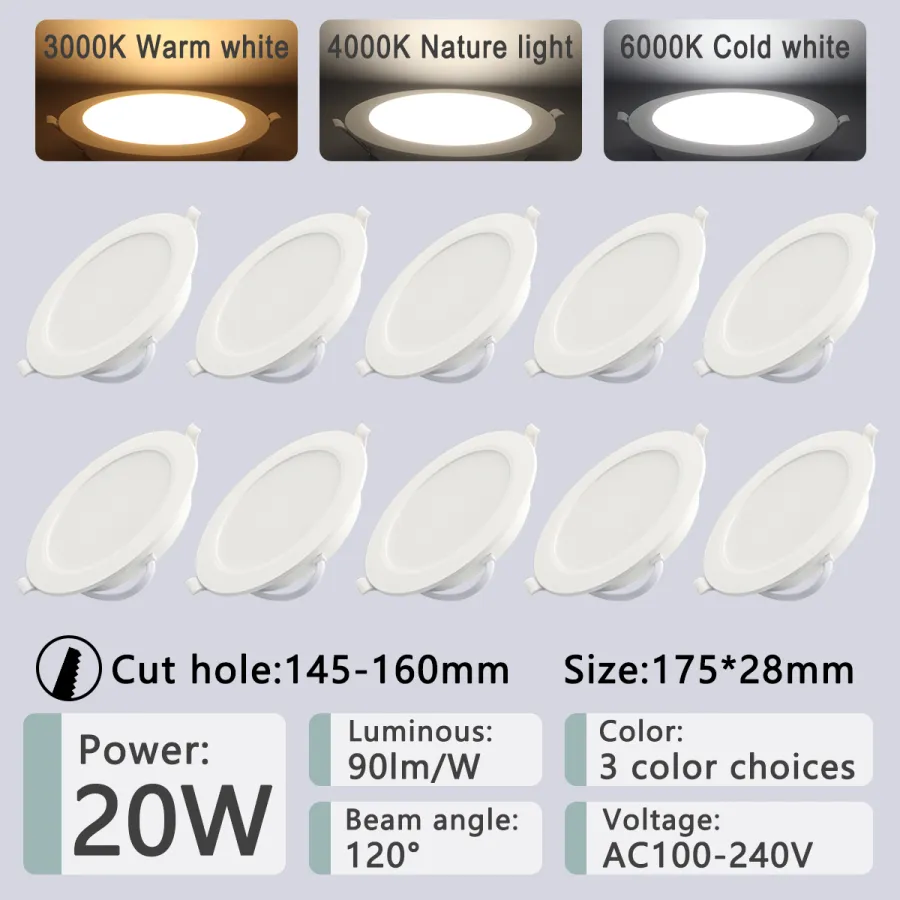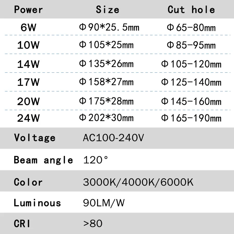 Colour: Warm White(3000K); Daylight(4000K); Cold White (6000K)