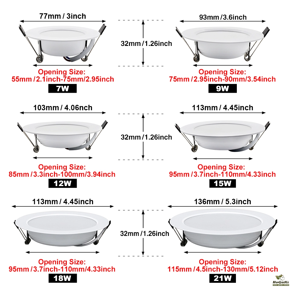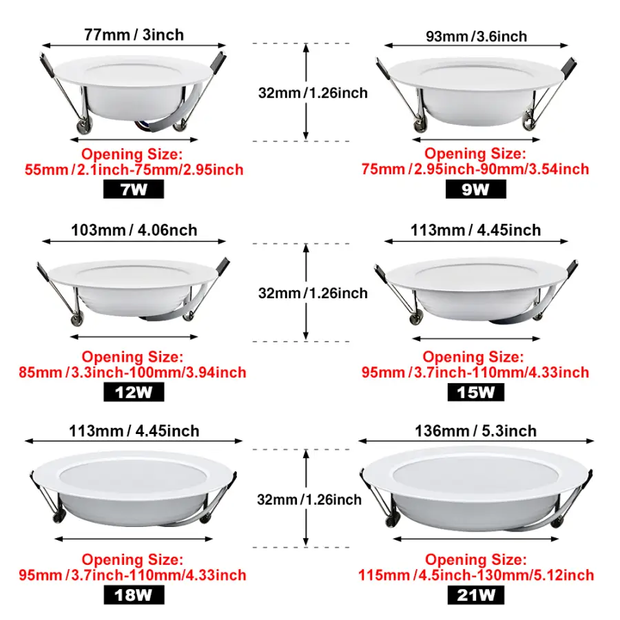 Power: 7W / 9W / 12W / 15W / 18W / 21W