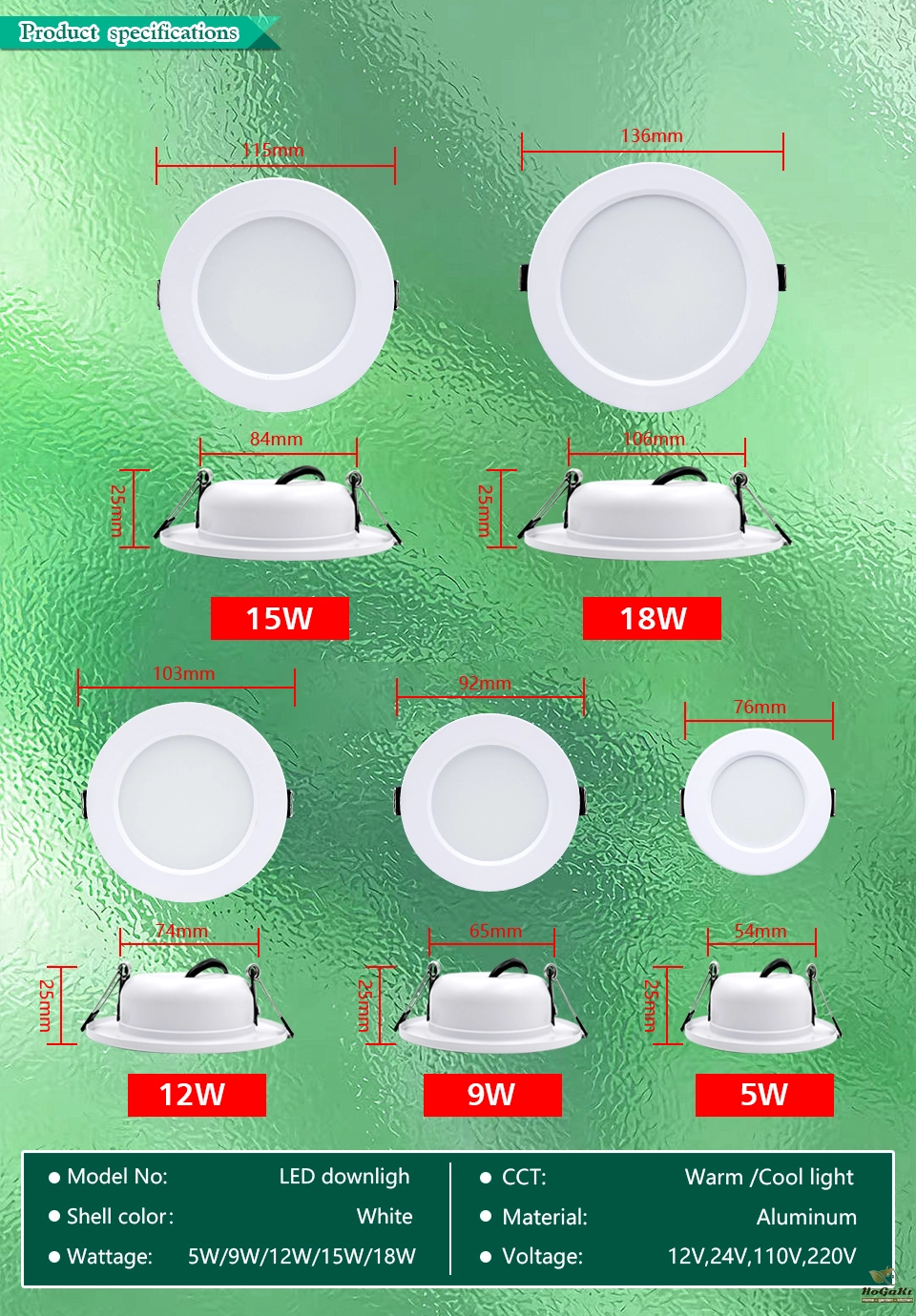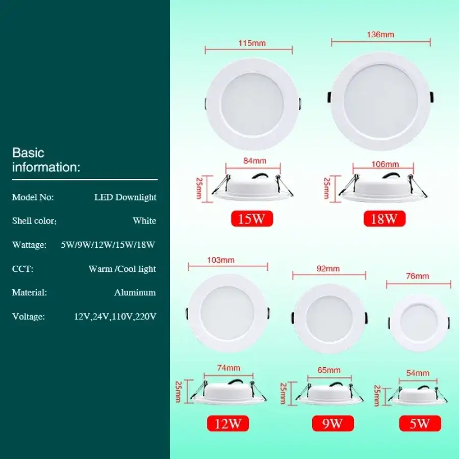 Power: 5W 9W 12W 15W 18W