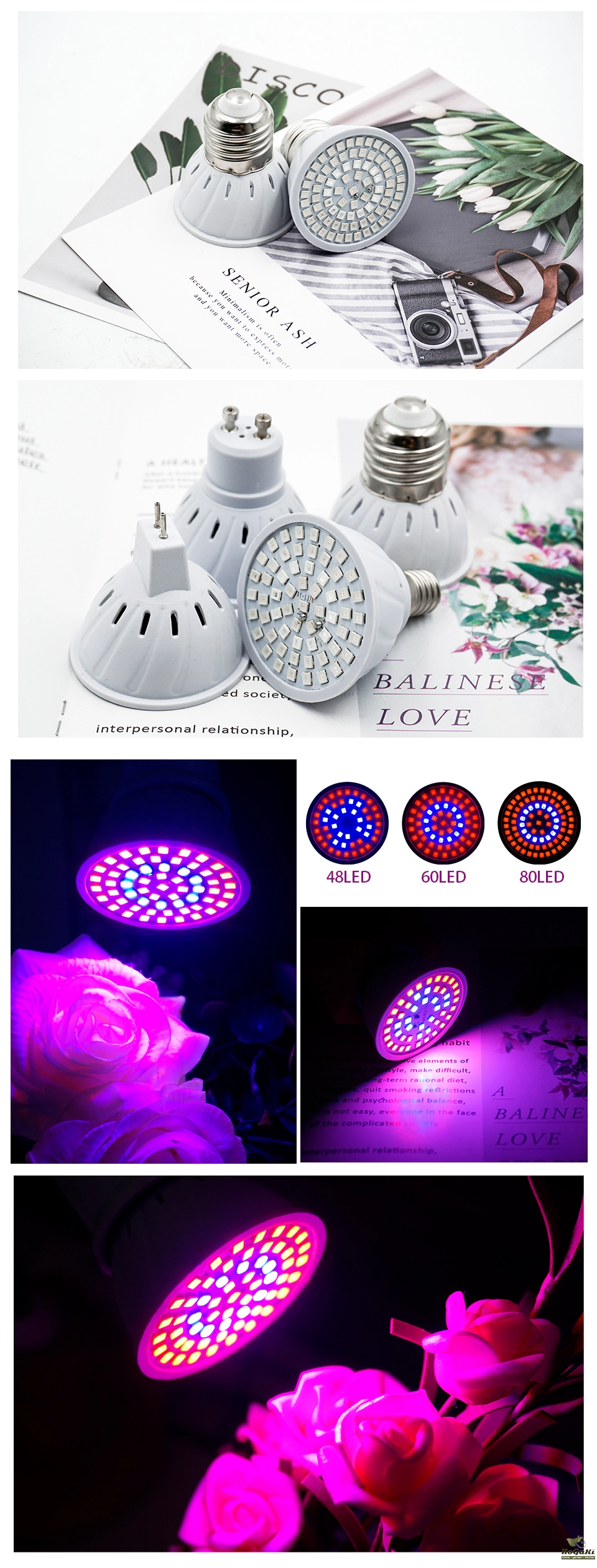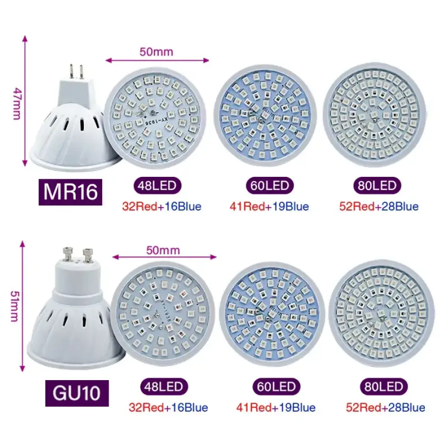 48W Full Spectrum E27 Plant Growing Light Foldable LED Grow Light Bulb Plant Lamp Indoor Plants Flower Seedling Growth Lighting