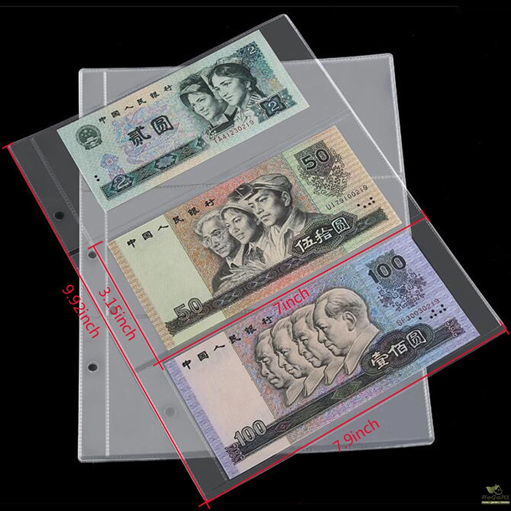 10Pcs Money Banknote Collecting Holder Sleeves 3-slot Loose Leaf Sheet Album