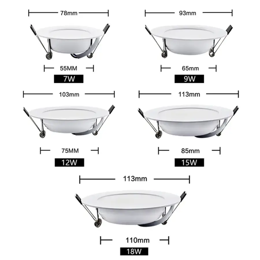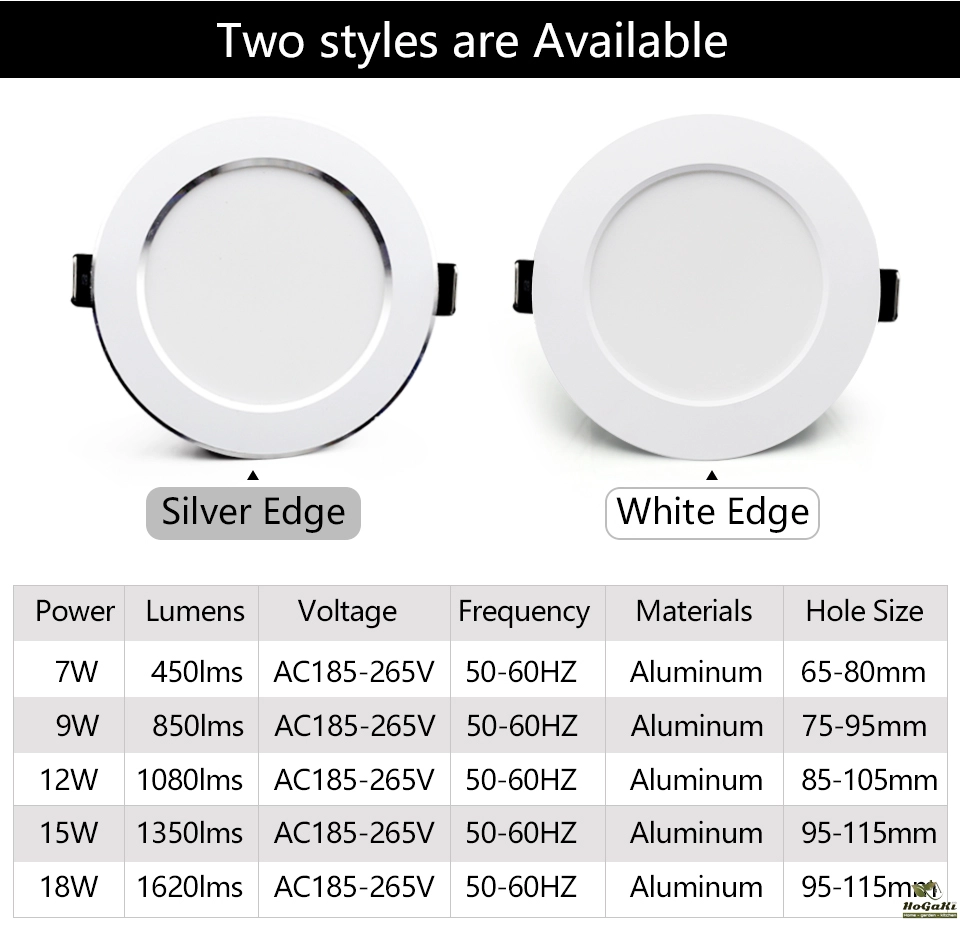 10pcs/lot LED Downlight White Body 5W 9W 12W 15W 18W Round Led Ceiling Light DC 12V 24V AC 110V 220V Bedroom Indoor Led Lighting