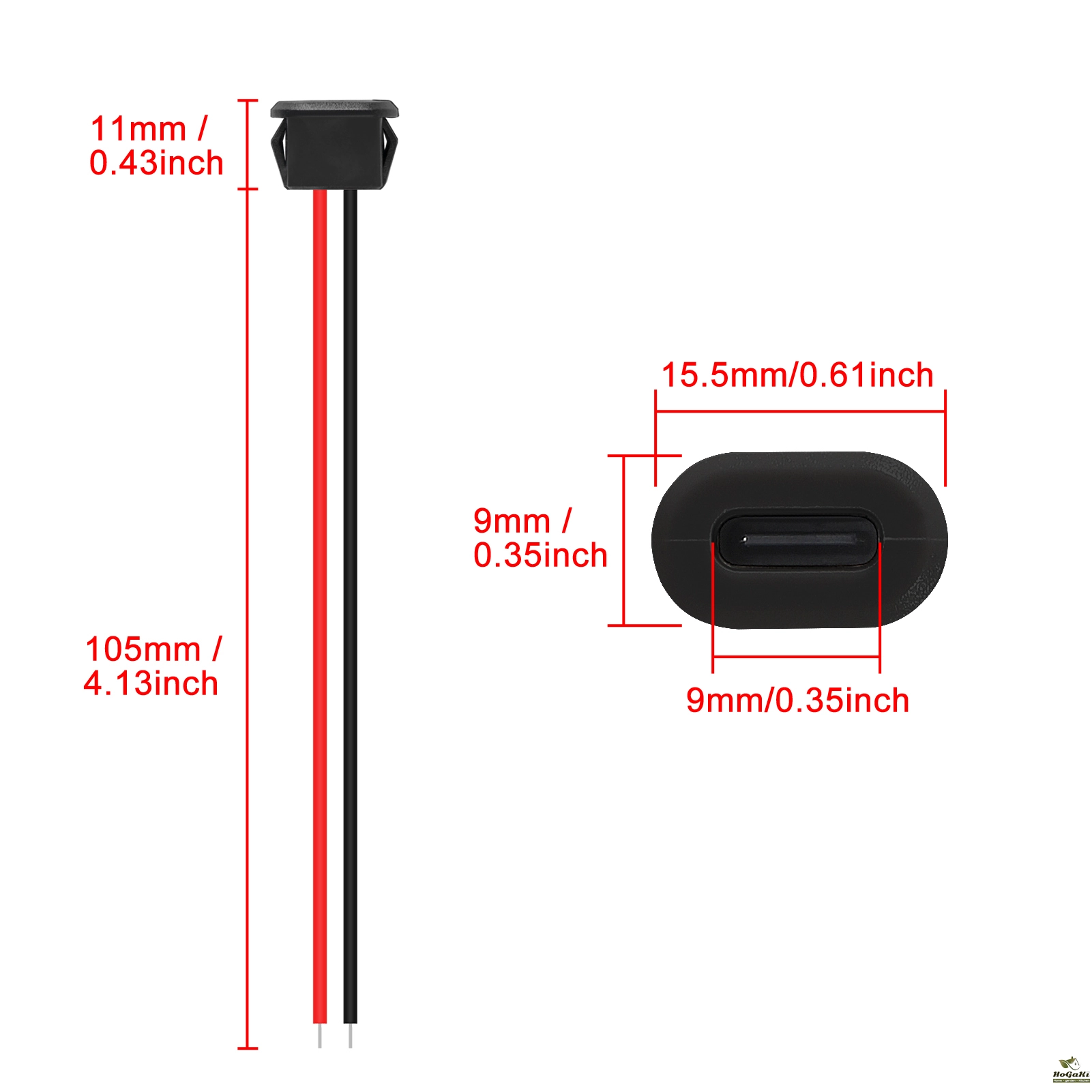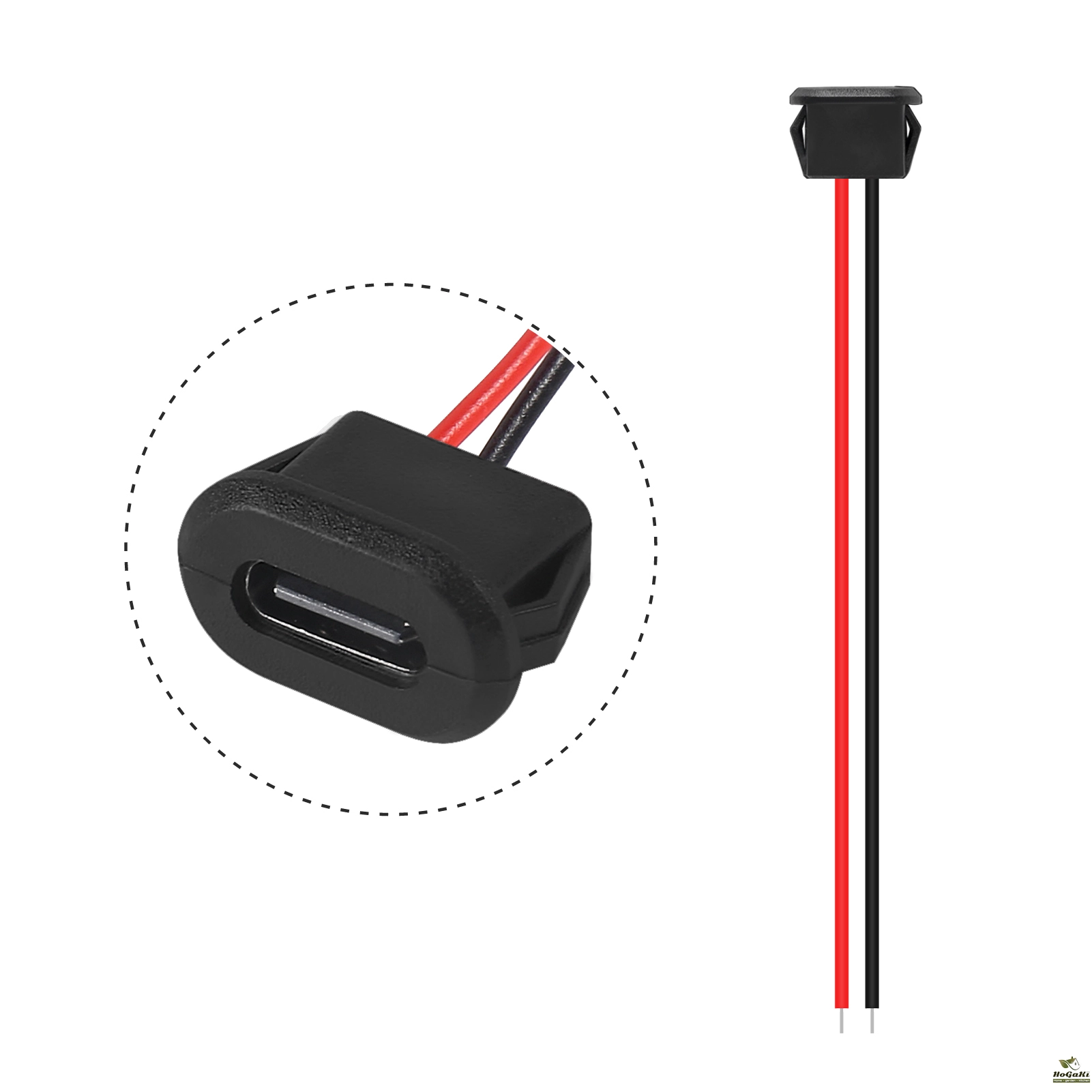 Type-c connector jack female charging port is type-C female head and 2-pin bare wire, providing a safe and simple DIY solution for type-C connector with cable.