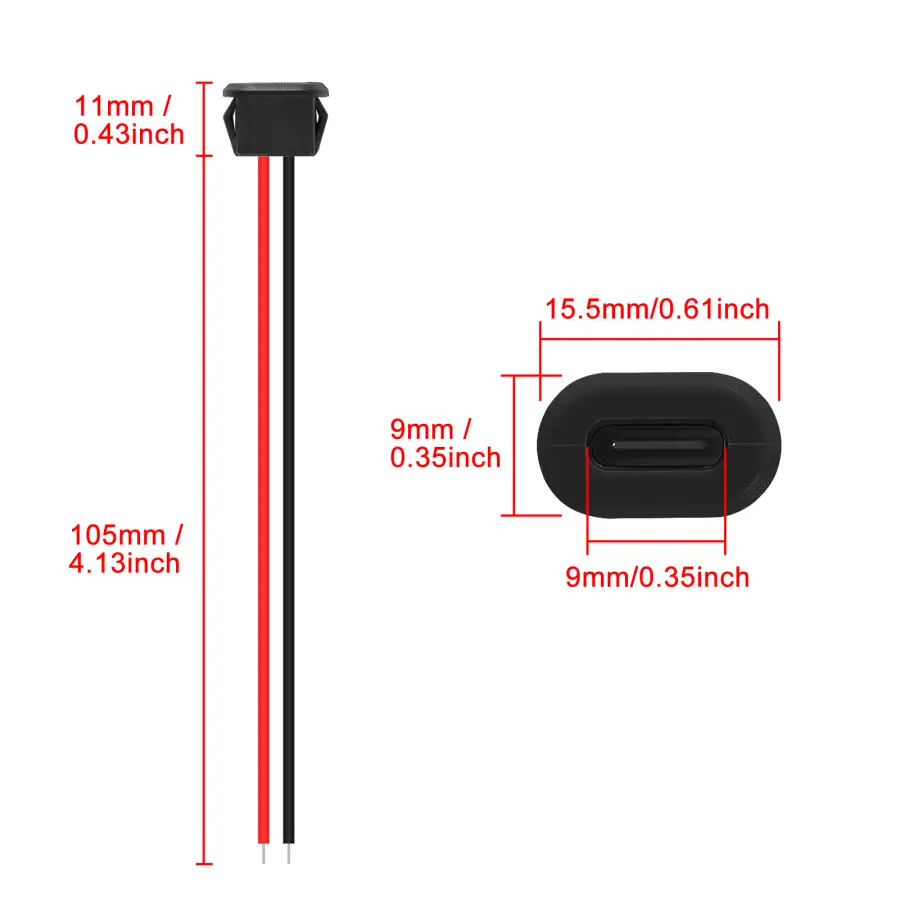 Type-C female socket connector red positive electrode, black negative electrode, easy to operate, rated voltage: 5V, maximum current: 3A.