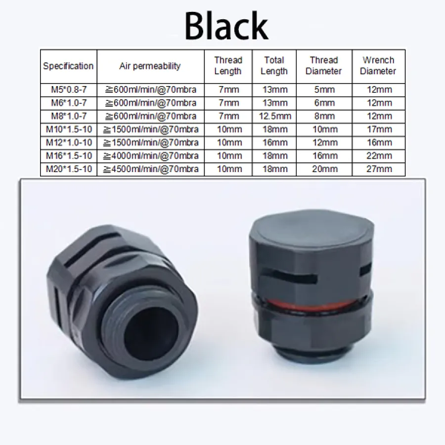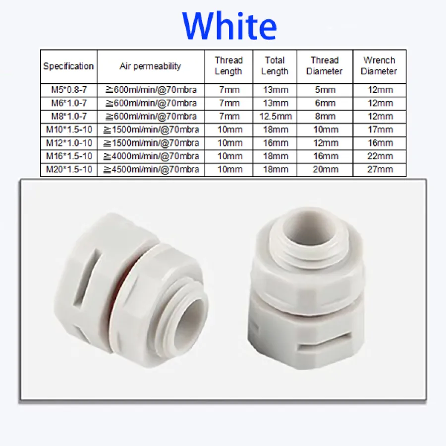 10pcs Waterproof Vent Plug Screw Automatic Exhaust Breather Valve M5 M6 M8 M12 M16 M20 IP68 Nylon Breathable Valve Pressure Balance
