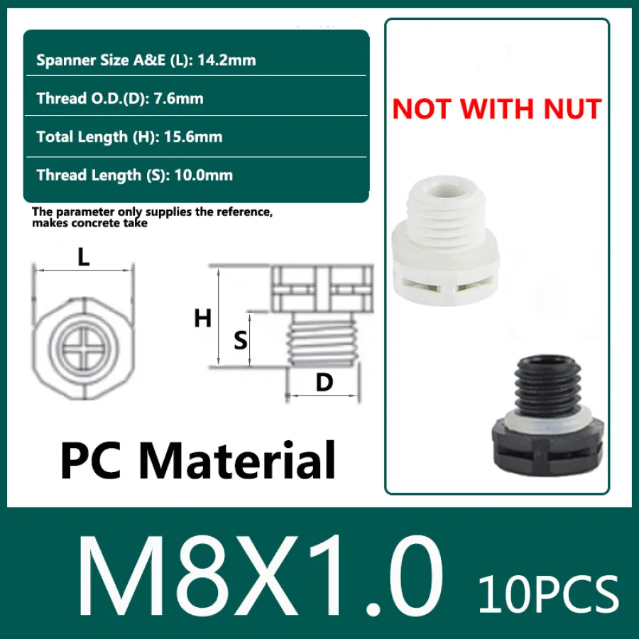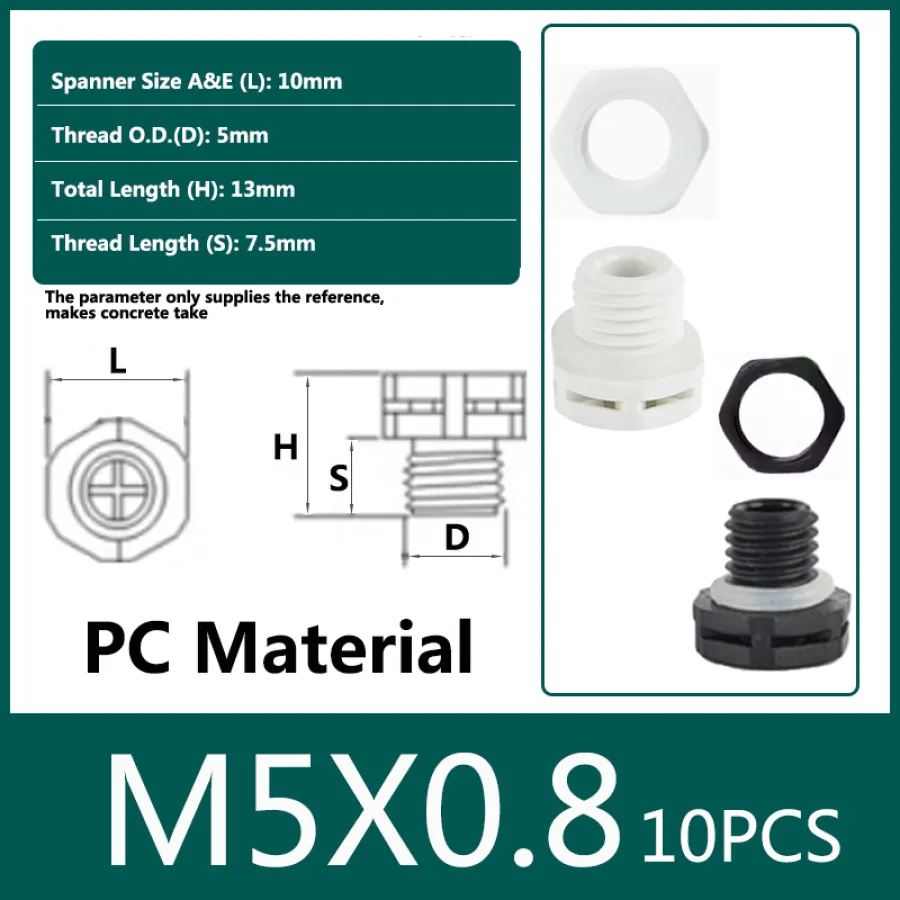 10PCS IP68 Waterproof Breathable Vent Plug Automatic Exhaust Breather Valve, Pressure Balance Nylon Screw Type M5 M6 M8M12M16M20