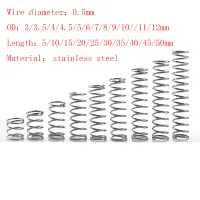 20pcs/Lot 0.5mm Stainless Steel Micro Small Compression Spring OD 3/3.5/4/4.5/5/6/7/8/9/10/11/12mm Length 5mm to 50mm