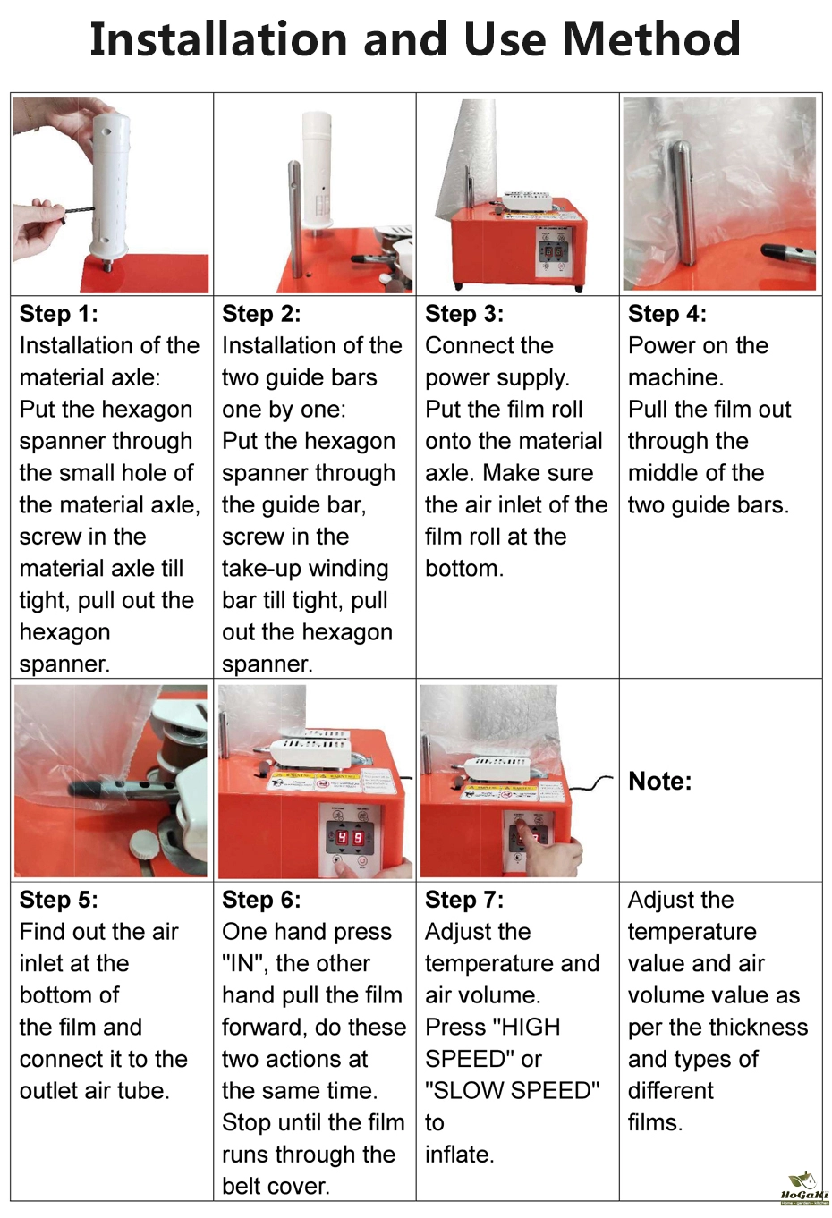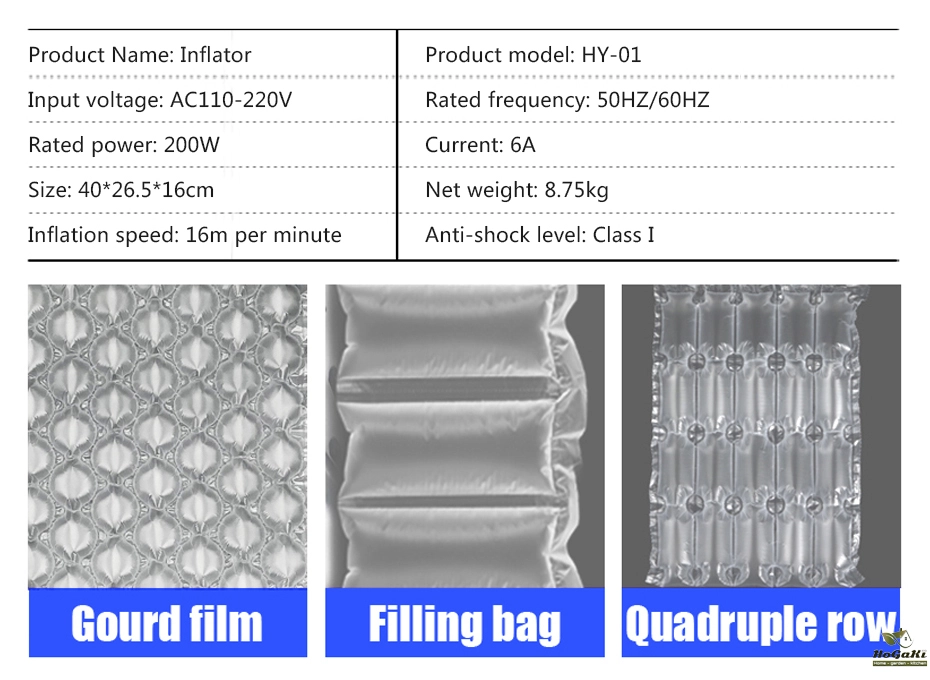 It is recommended to set 9 gears for gourd film, 5-7 gears are suitable for air pillows, and the speed setting should be adjusted according to the actual product.