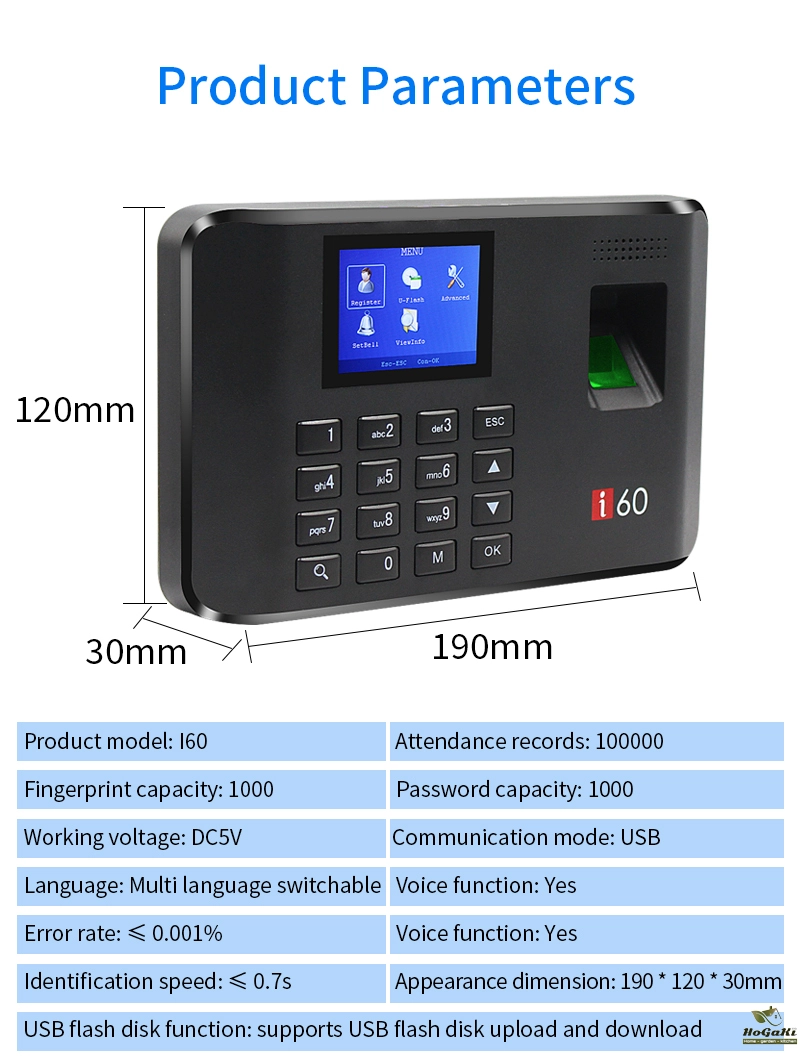 110V-240V RFID Electric Inspection Biometric Attendance Machine USB Fingerprint Time Clock in for Employees Exit Data Recorder