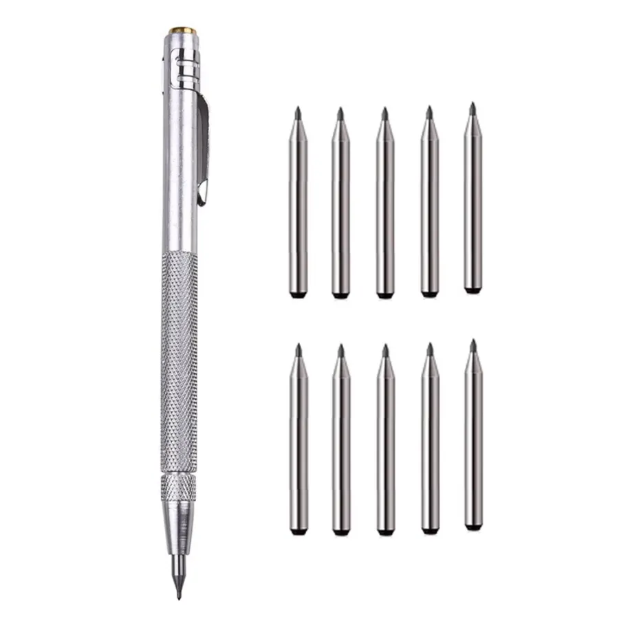 *The glass scribe features a durable tungsten carbide tip, aluminium body making it works effortlessly on hard materials including hardened steel, stainless steel, ceramic and glass.