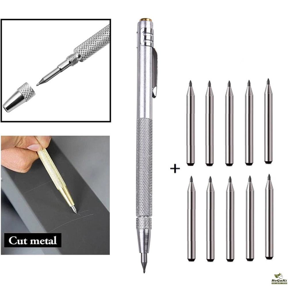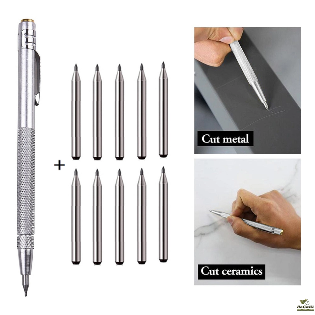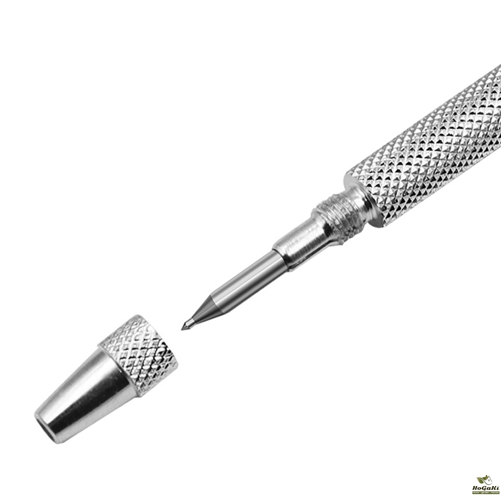 *The glass scribe features a durable tungsten carbide tip, aluminium body making it works effortlessly on hard materials including hardened steel, stainless steel, ceramic and glass.