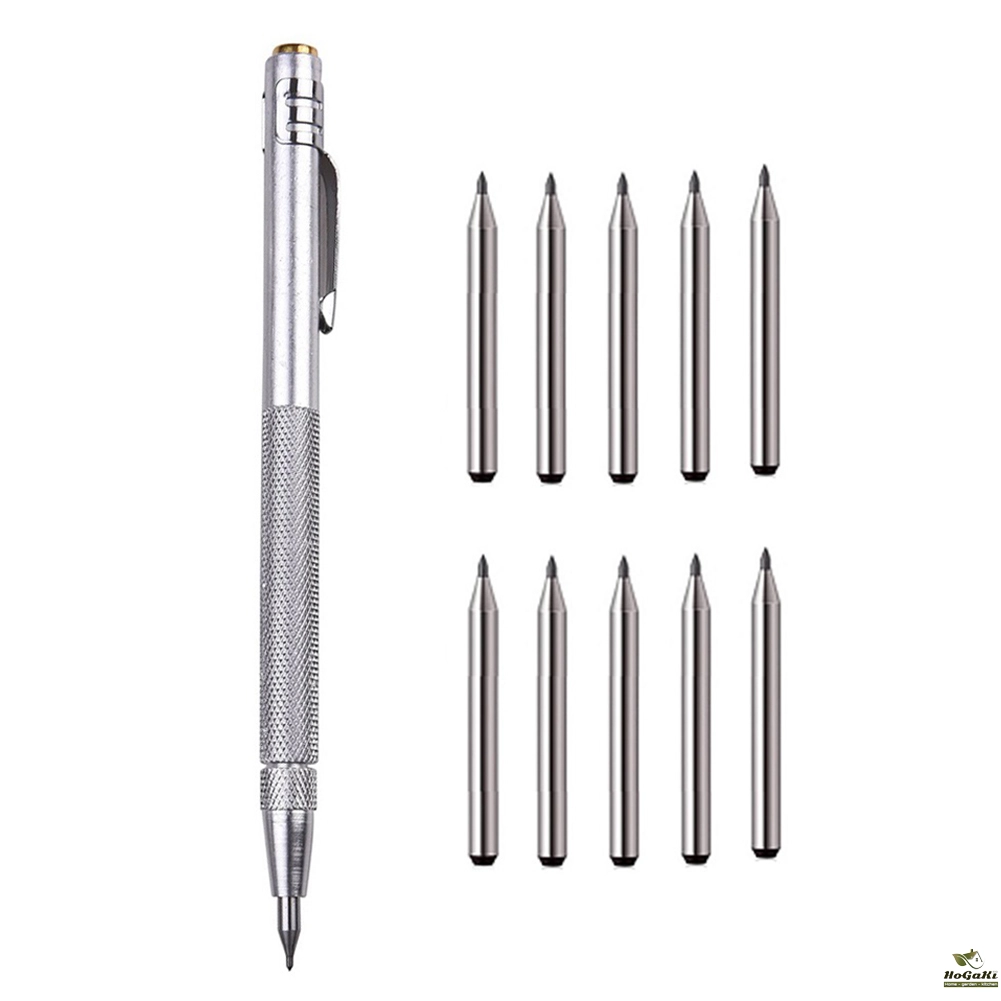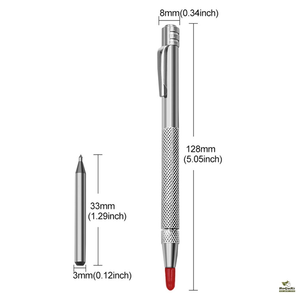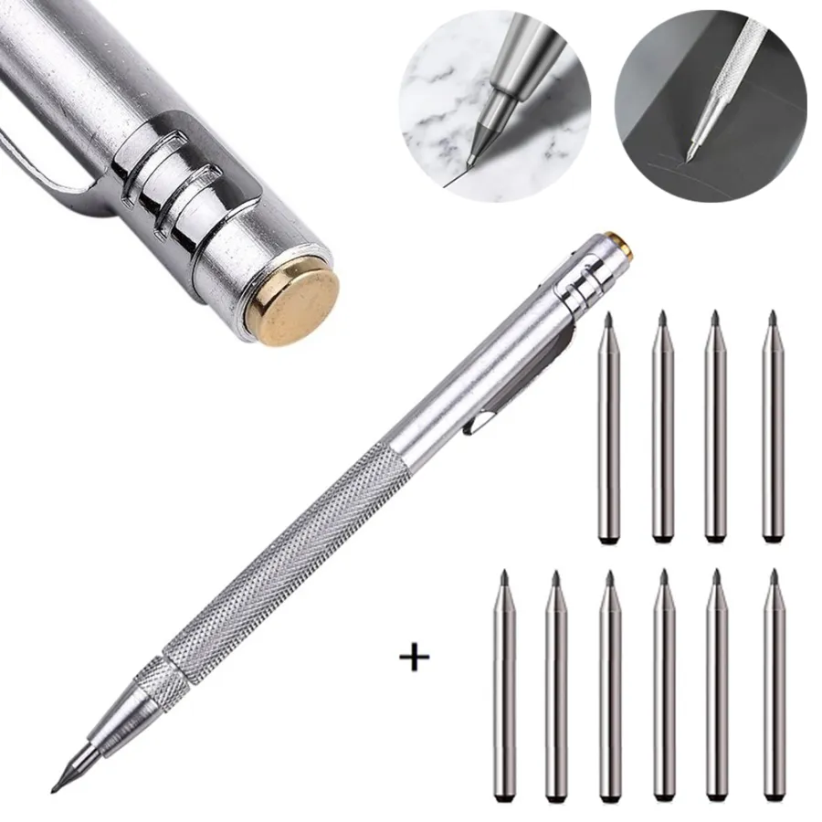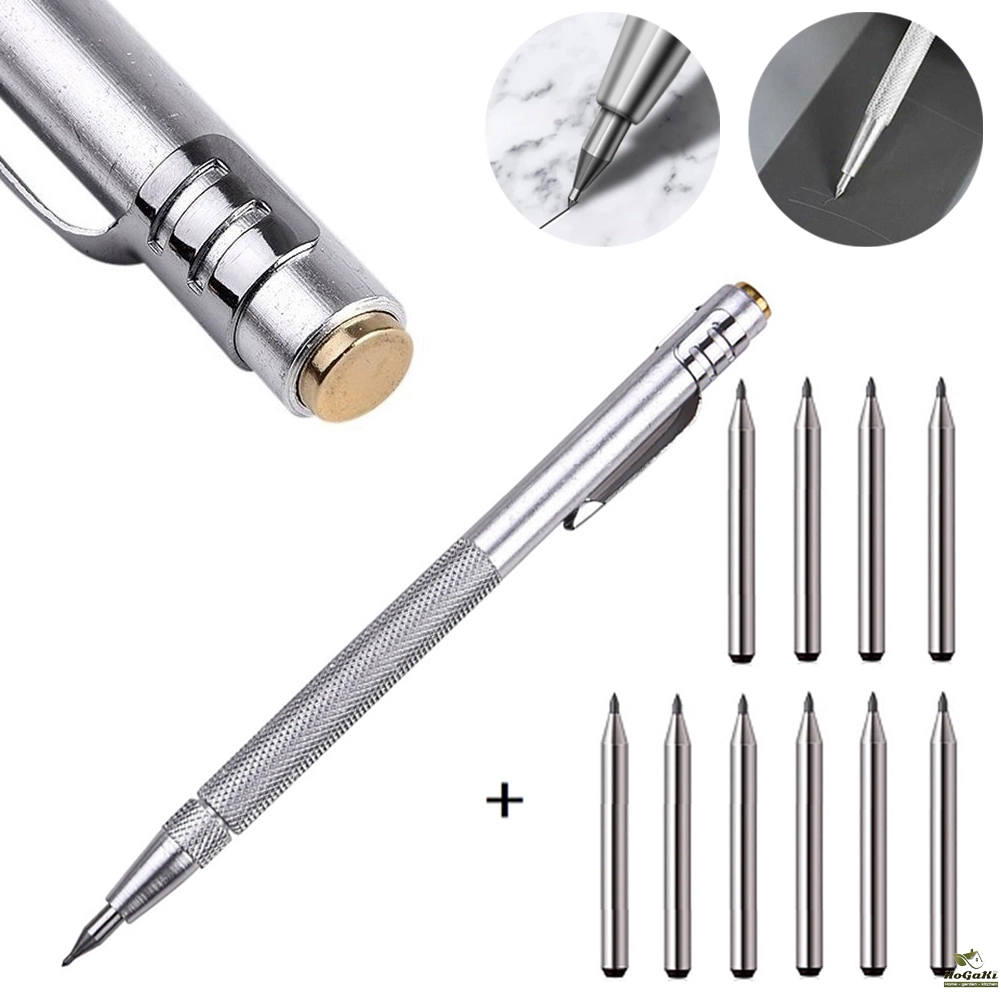 *The glass scribe features a durable tungsten carbide tip, aluminium body making it works effortlessly on hard materials including hardened steel, stainless steel, ceramic and glass.