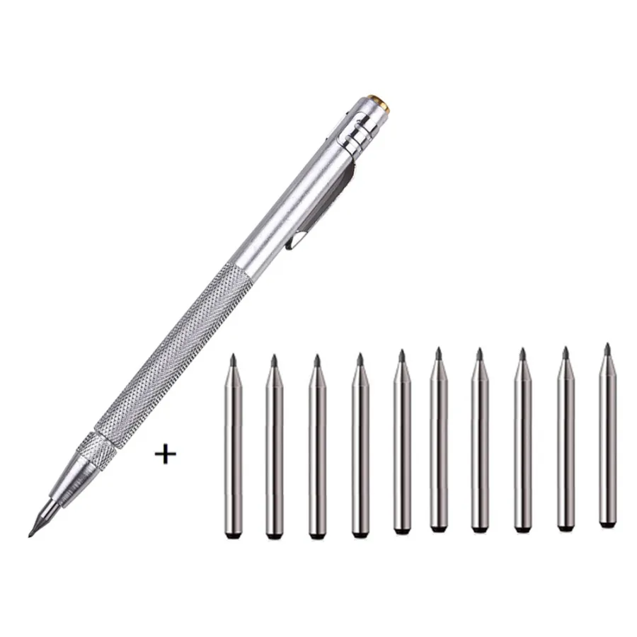 *The glass scribe features a tungsten carbide tip, aluminium body making it works effortlessly on hard materials including hardened steel, stainless steel, ceramic and glass.