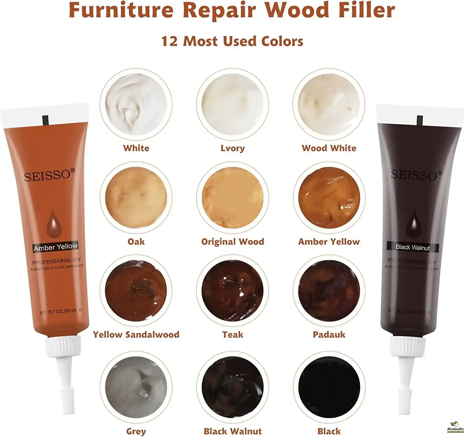 【Different Colors】: Our wood repair kit includes White, Ivory, Wood White, Oak, Original, Amber Yellow, Yellow Sandalwood, Teak, Padauk, Gray, Black Walnut, Black to match the color of your furniture. Or blend different colors together to match the color you want.