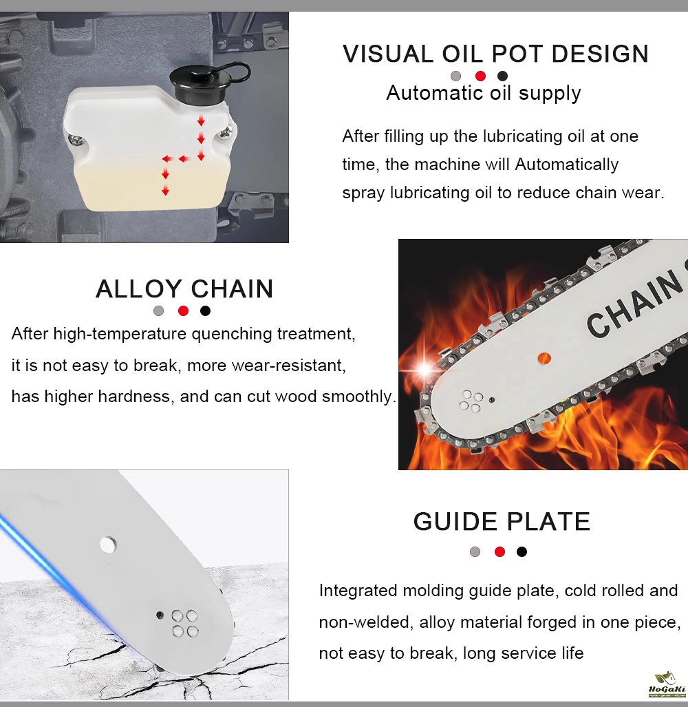 Built-in oil tank, automatic oil supply system, effective lubrication, no oil leakage, reduce chain wear.