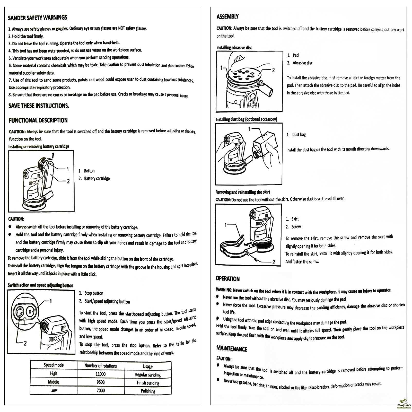 This cordless electric polisher adopts brushless motor, quick operate, timely braking, smoothly speed regulation in a wide range, relatively simple control the circuit and so on. Self-adhesive tray at the bottom for easy replacement of sandpaper(sandpaper is not included). 6 gears of speeds adjustable, you can adjust according to your demands easily. This is a 125mm diameter round sanding machine, practical to meet your working needs.