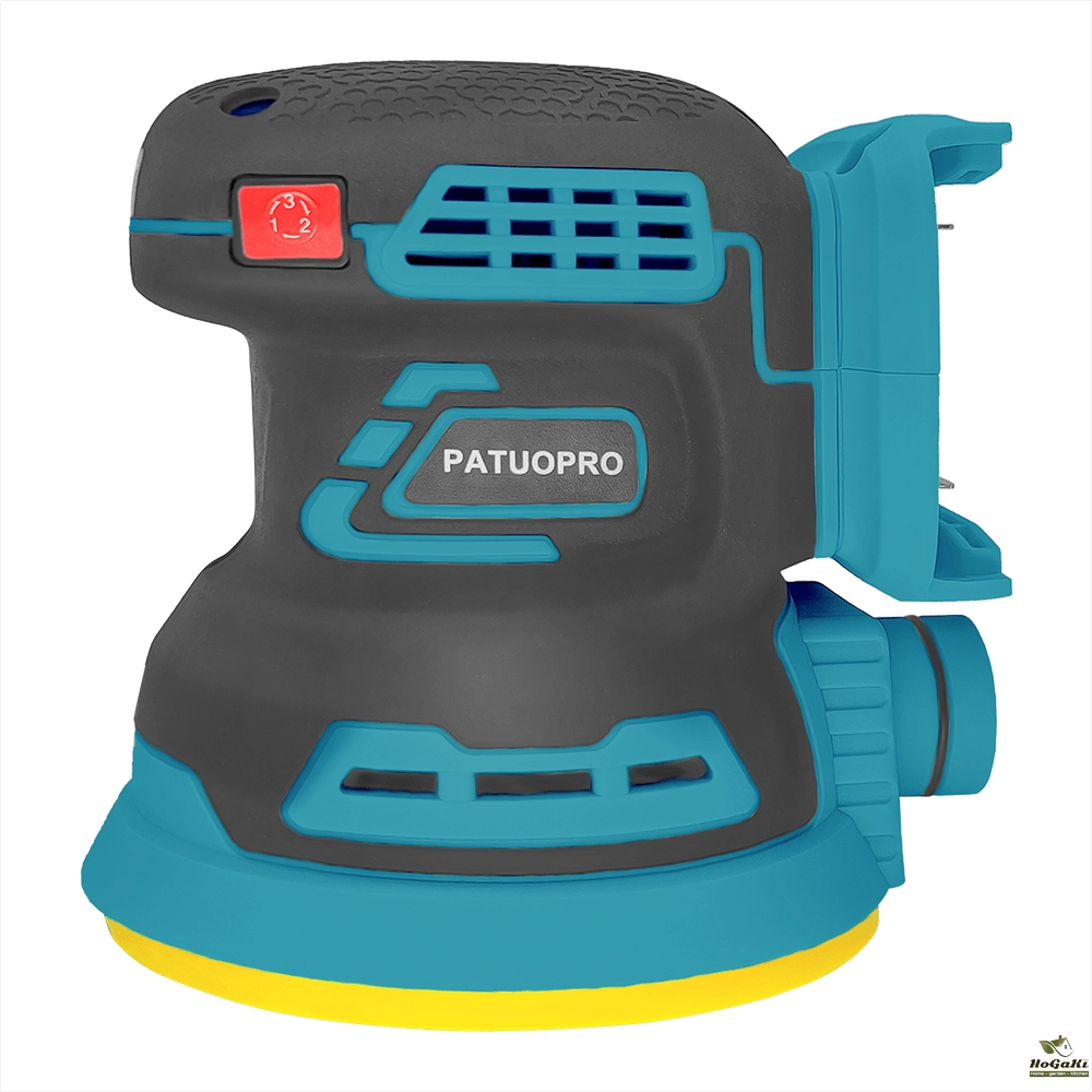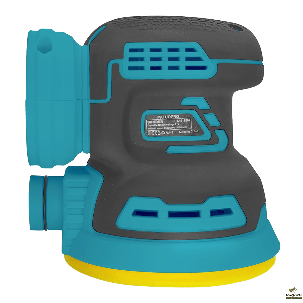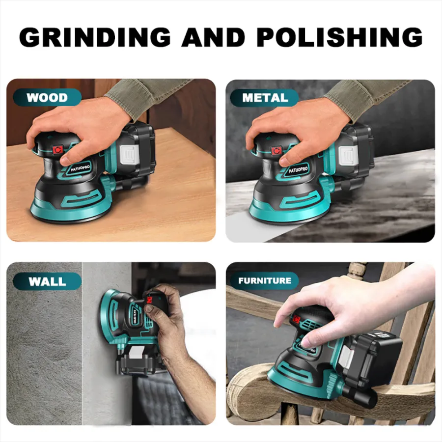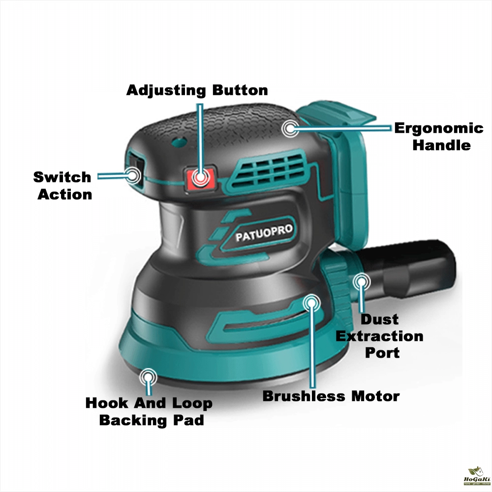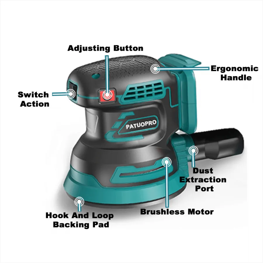 - Uses quick-change 5" (8-hole) hook-and-loop abrasive paper