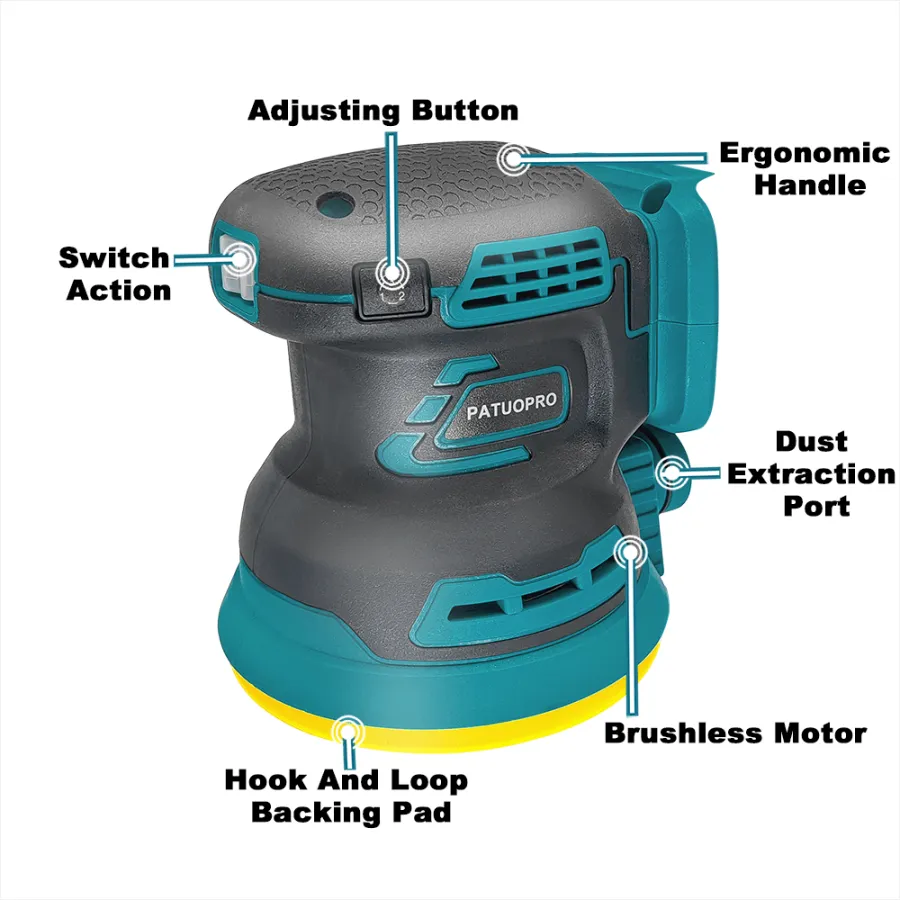 - Ultimate performance:Weight:1.4kg;No Load Speed:8,000-12,000/min; Sanding surface:φ125mm.