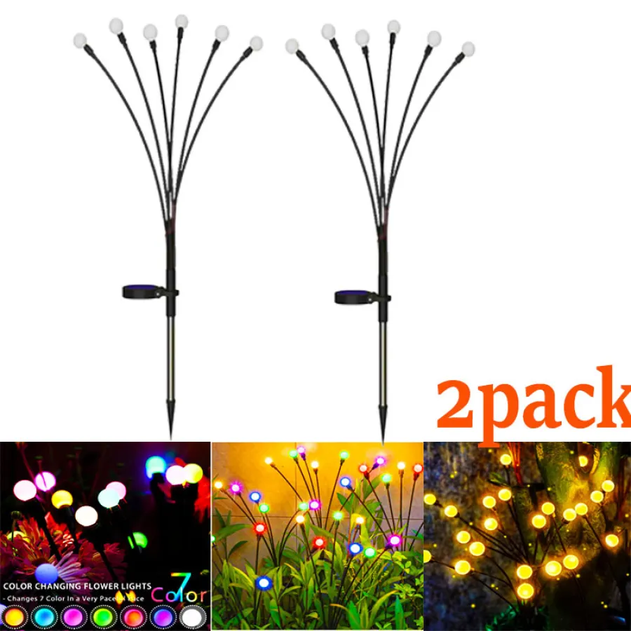 Solar Fireworks Lights 60/90/150/200 LED Outdoor Multicolor Waterproof Starburst Decorative Garden Path Lamps with 8 Modes