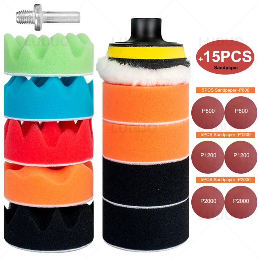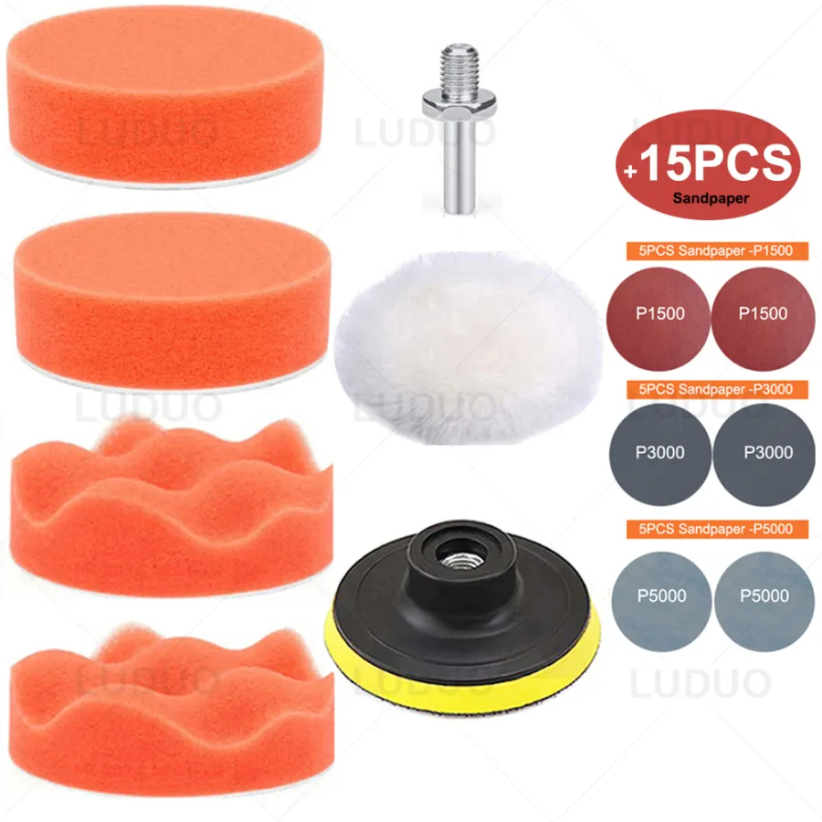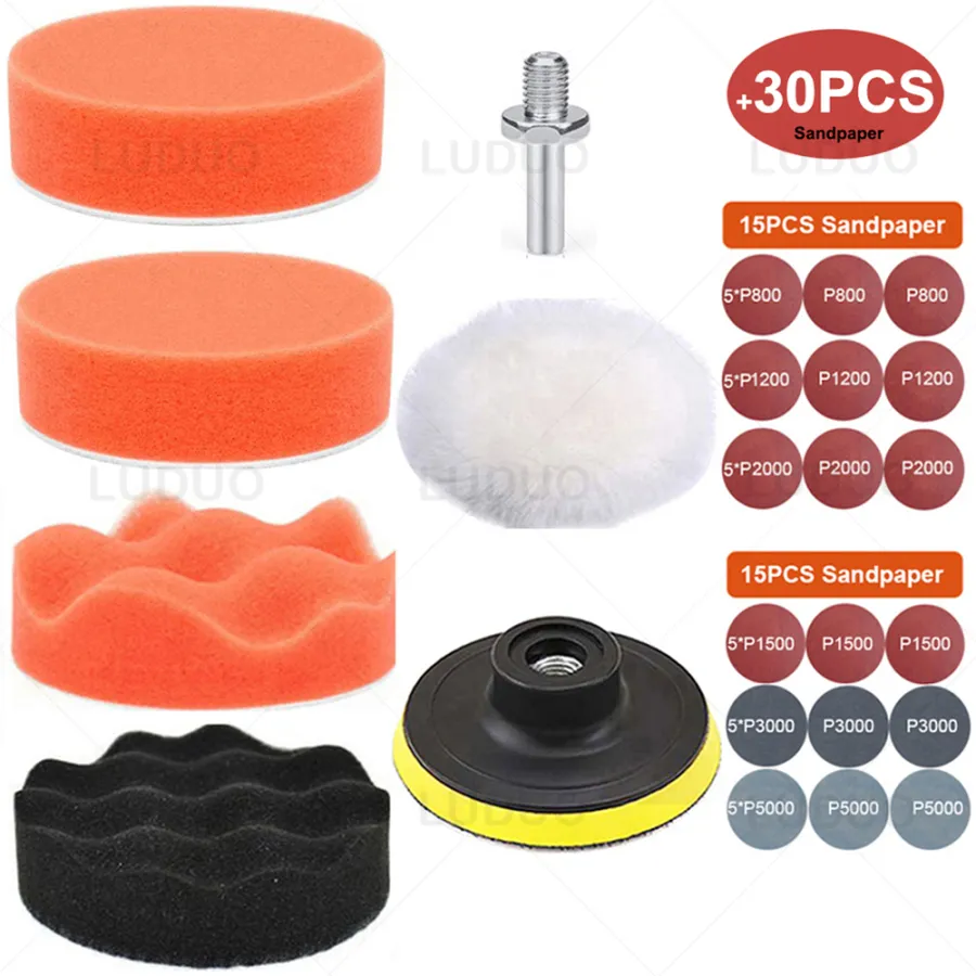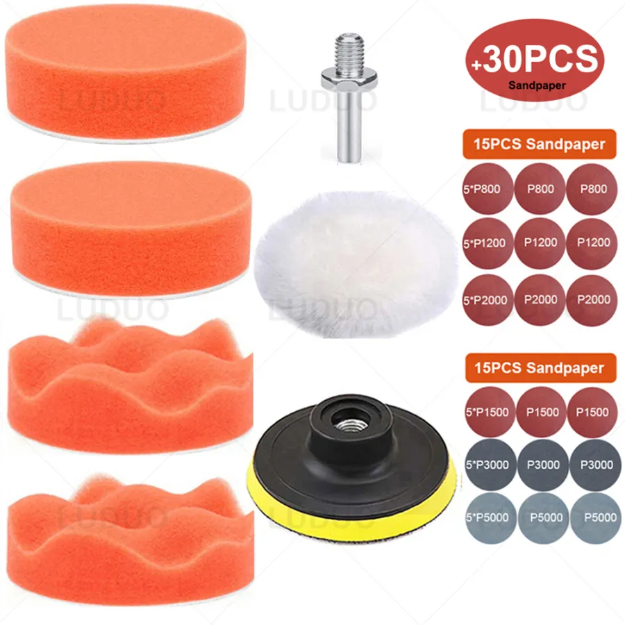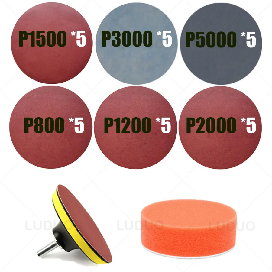 3 Inch Car Polishing Kit Sponge Polish Pad Sandpaper Disc Buffing Pad Dets for Headlight Repair Refurbish Wheel Polishing Care