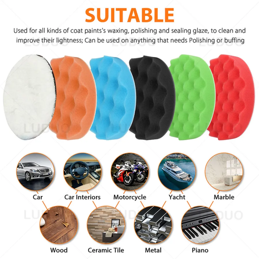 High quality: high quality wool pad, sponge pad, flexible, washable and reusable. Different shapes of sponge have different effects, suitable for rough and small area polishing.