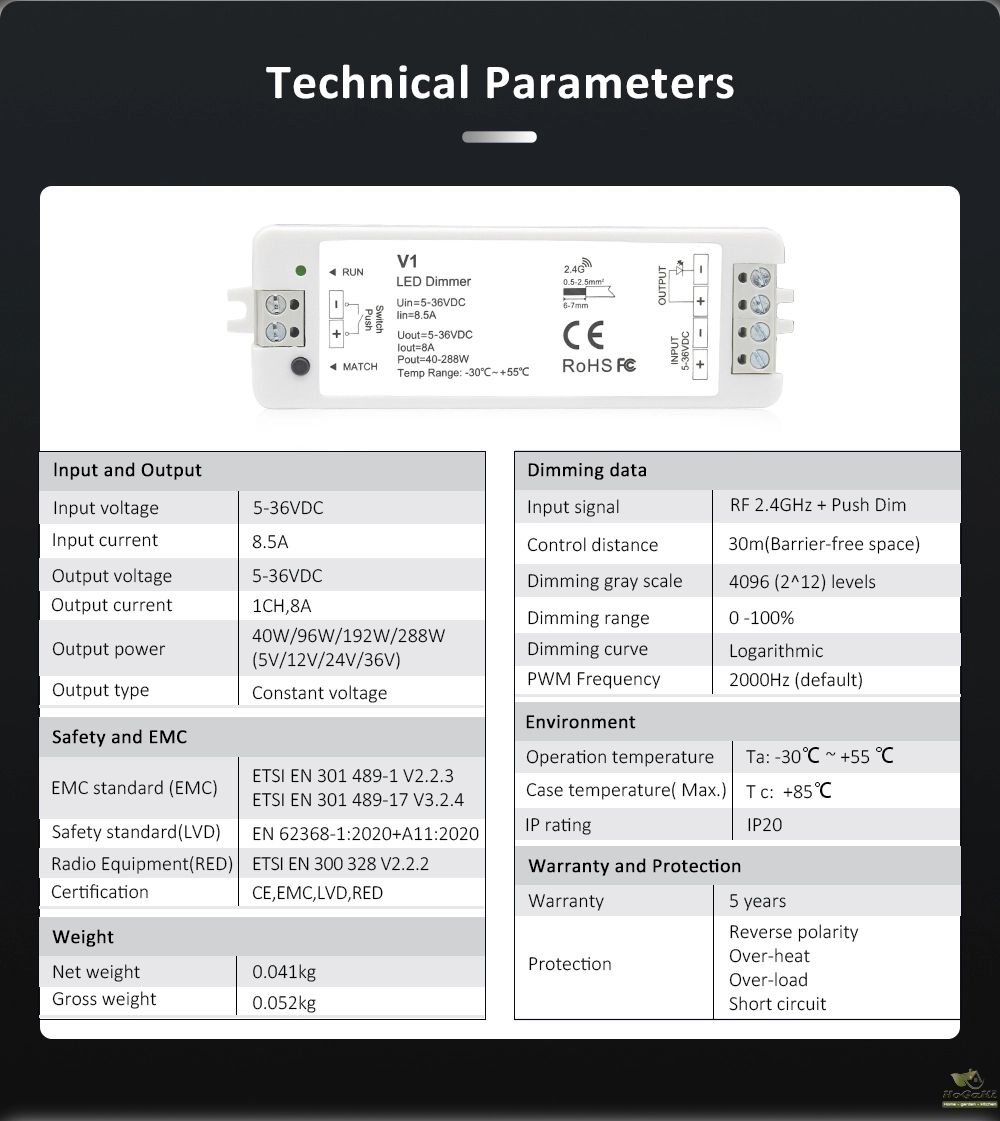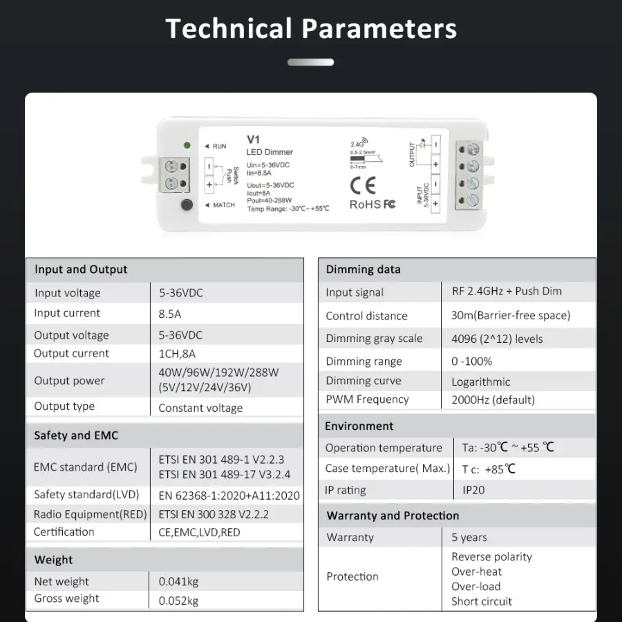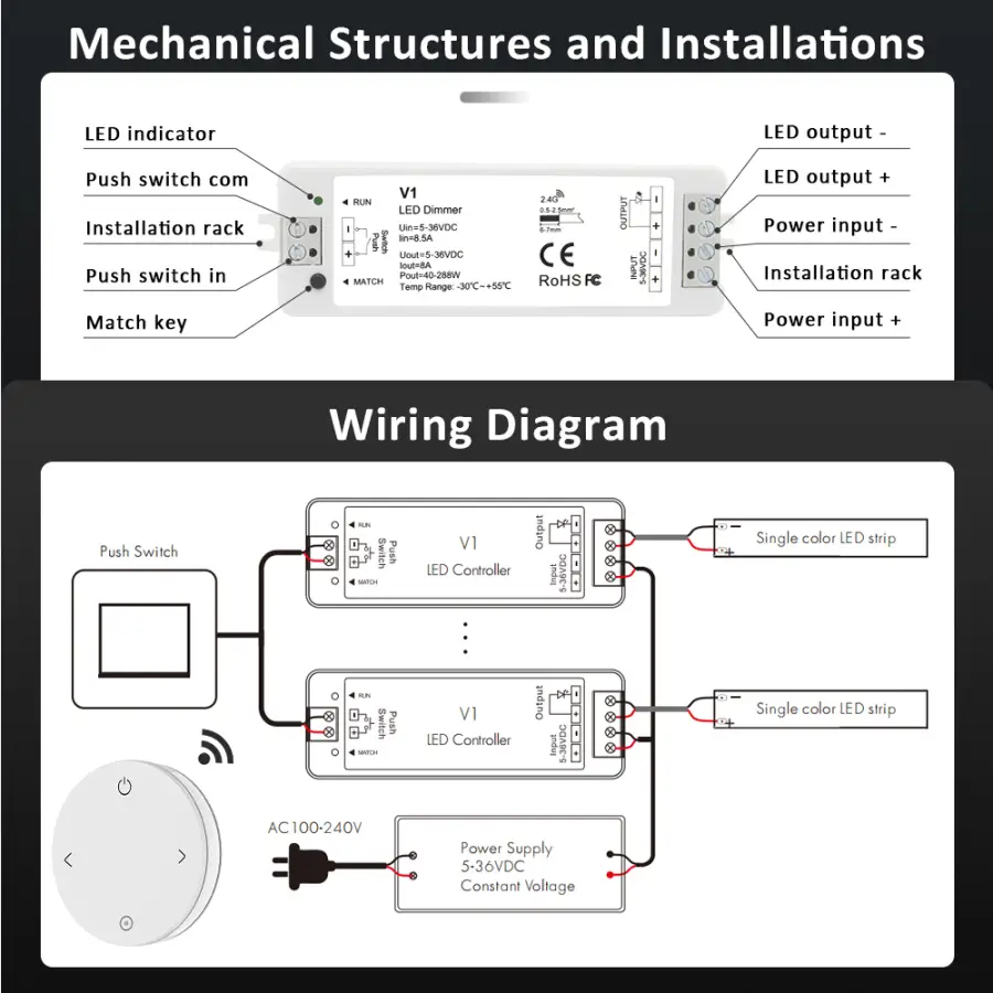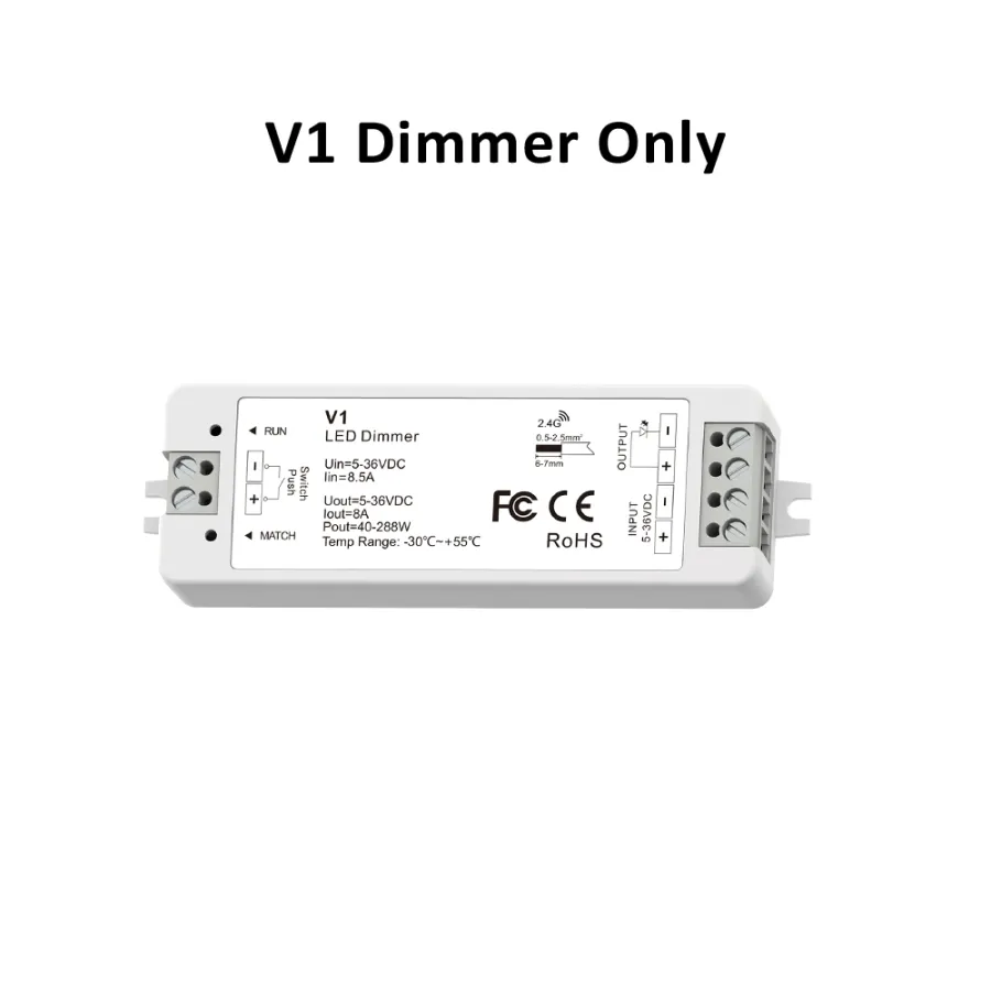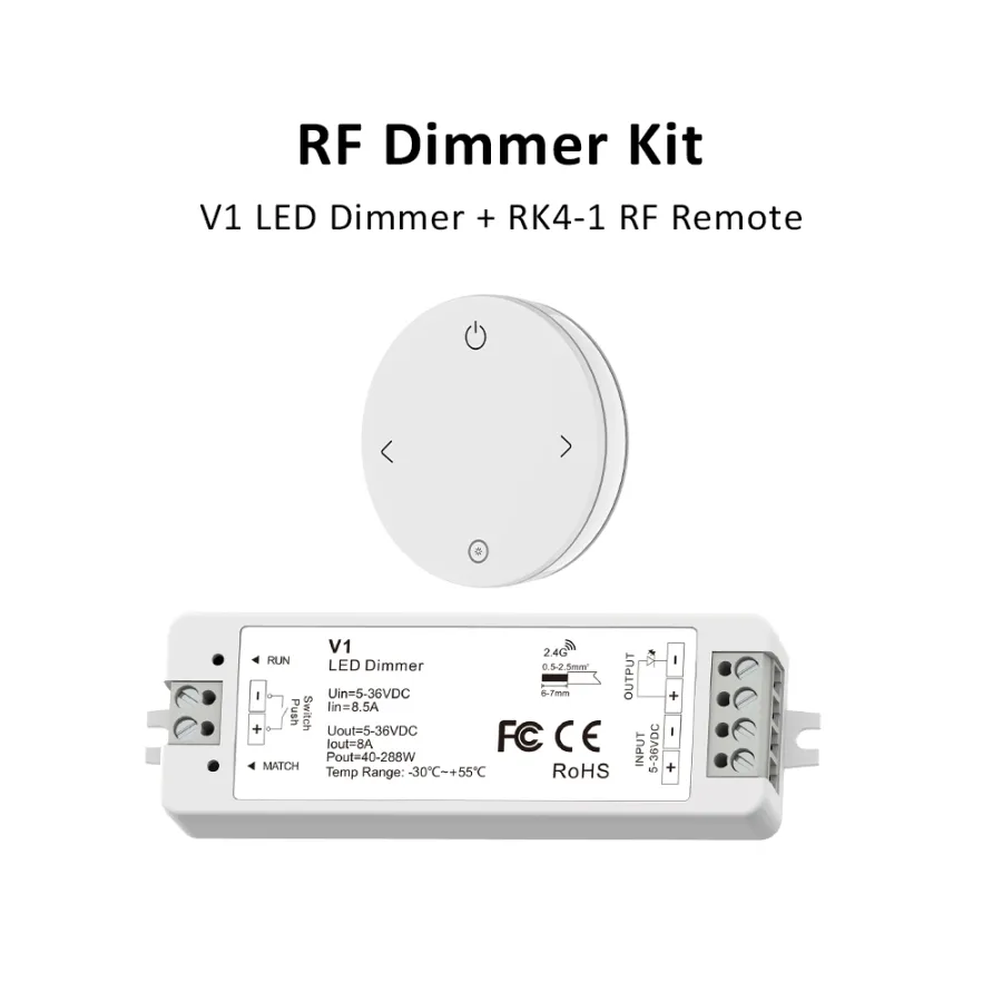 LED Light Strip Dimmer, DC 12V/24V 30A PWM Dimming Controller, Knob Adjust Brightness ON/Off Switch for Single Color LED Ligh