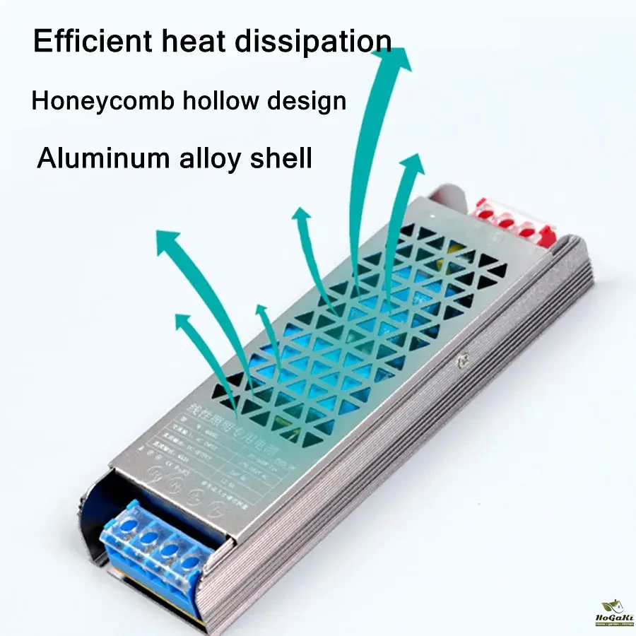 •This series of LED drivers are lighting transformers specially designed for AC to DC voltage. Design schemes & application fields are limited to LED lighting, such as: light box billboards, shop signs, home decoration lighting, LED light strips, LED lighting drivers, luminous characters, light box posters, line lights, LED wine cabinet lights, etc, LED low-voltage transformers To escort you to use electricity safely.