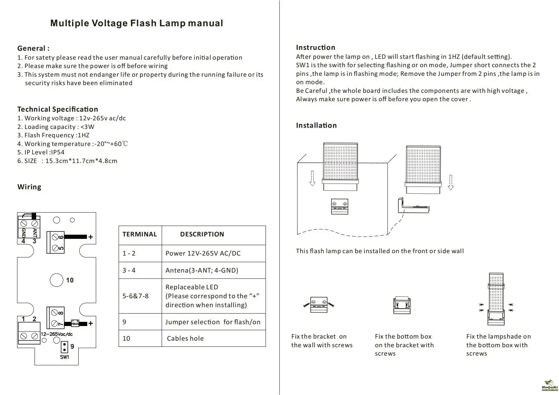 12V-265V AC/DC Gate Door Flash Light Security Protection Led Flash Blinking Warning Light Strobe Warning Alarm Lamp for Gate