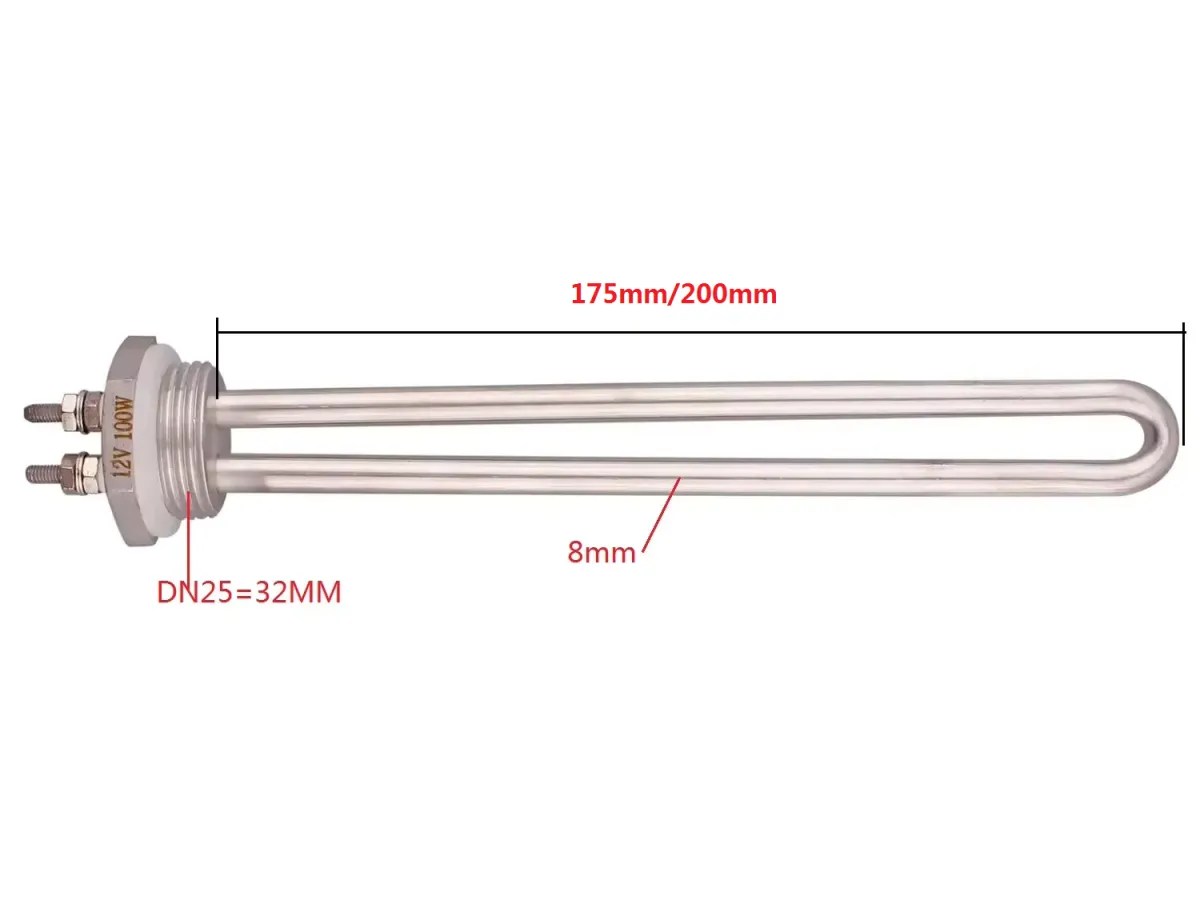 12v Heating Element DC Solar Resistance U Shape DN25 Electric Immersion Water Element Tubular Boiler Heater 100w 150w 200w