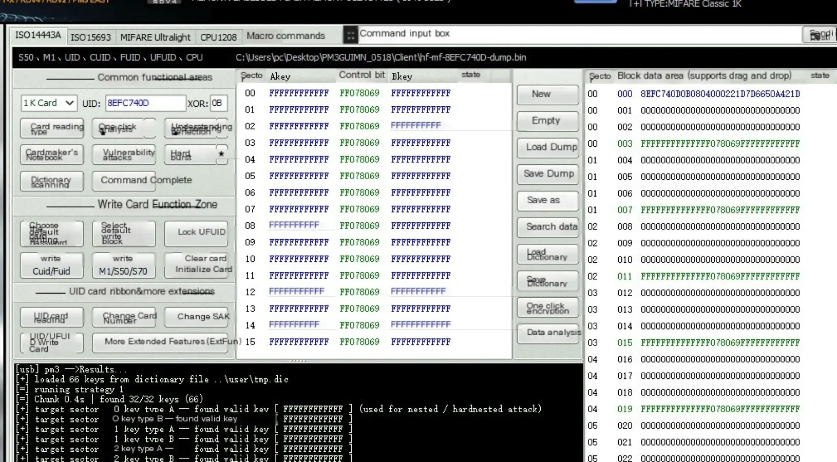 2. Block 0 can be modified directly with an ordinary IC reader/writer.