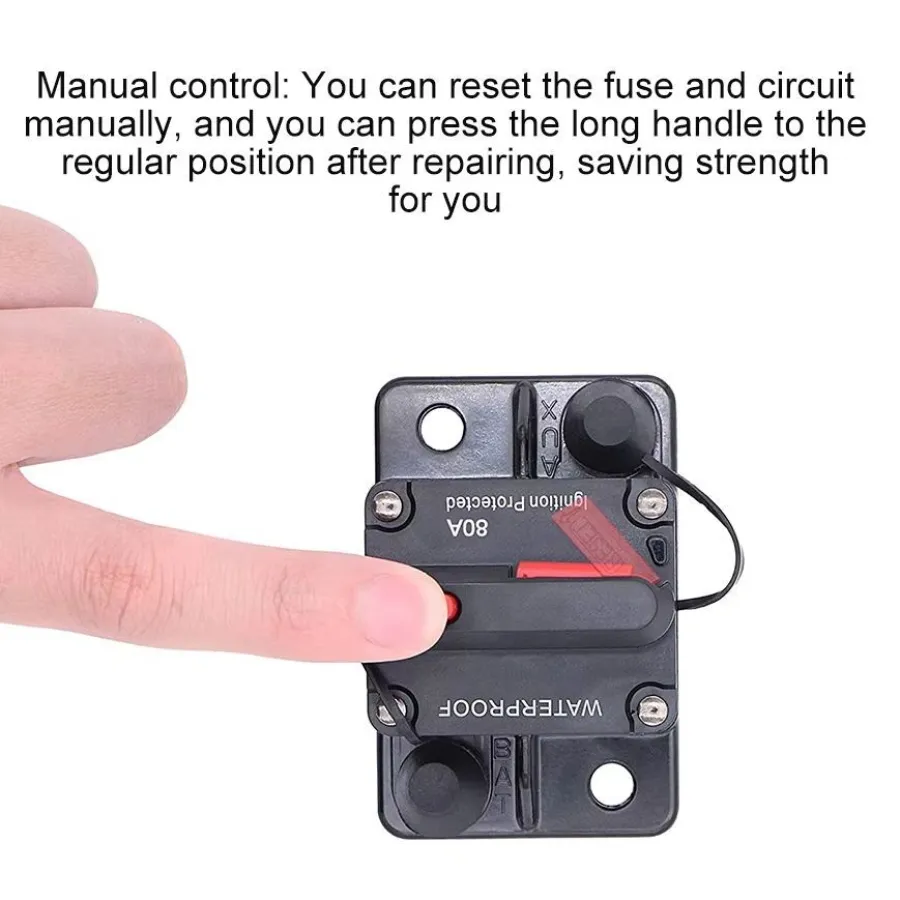 Manual reset: Unique on/ off reset push button, mounted on panel or firewall, can used as a kill switch. No need to buy more replacing fuses.