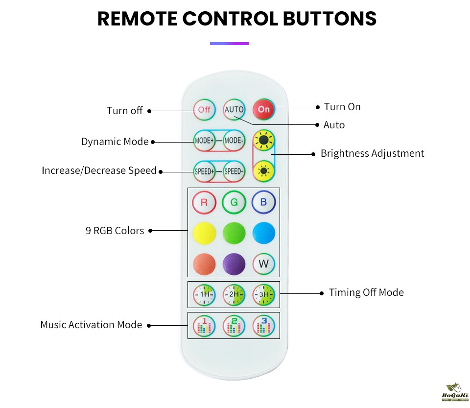 1.The remote control can adjust multiple light colors, modes, brightness, and follow music modes