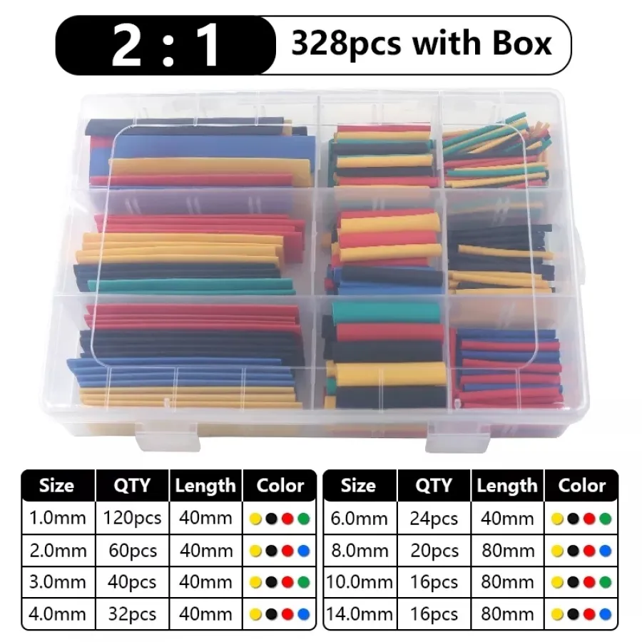 328PCS 164-780pcs Heat Shrink Tube Tubing Insulation Shrinkable Tube Assortment Electronic Polyolefin Wire Cable Sleeve Kit