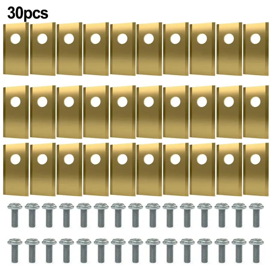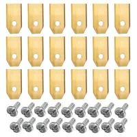 Specification: Certification: NONE Origin: Mainland China Model Number: Lawn Mower Cutting Blades name: Garden machinery - Lawn mower blades Material: stainless steel Single chip size: 35x18x0.75mm/1.37x0.70x0.029inch Quantity: 18pcs/30 pcs Gross weight: 90g/140g Color: Silver, Gold (optional) Type: Mower Replacement Blade Suitable mowers: Compatible with Gardena:R38Li,R40Li,R45L,R5Ou,R7OU,R75L,R8OL, R10OLI,R130L,R16OLI,R165,R180,SILENO,SlILENO+ Compatible with Husqvarna Automower 105,220AC,230ACX,260ACX,265ACX,305,308,310,315.320,330X,420,430X,440,450XSolarhybrid,G1 Compatible with Yardforce: SC600,SC 600 Eco, sC 900 Note: Due to the different monitor and light effect, the actual color of the item might be slightly different from the color showed on the pictures. Thank you! Please allow 1-2cm measuring deviation due to manual measurement. ![]()