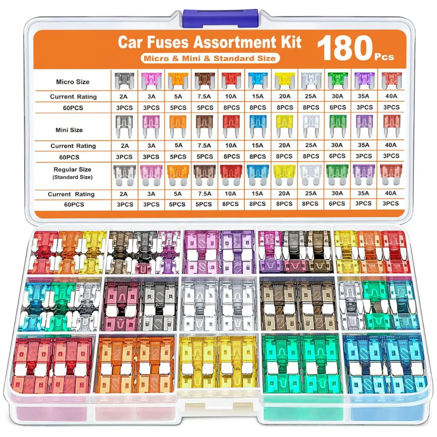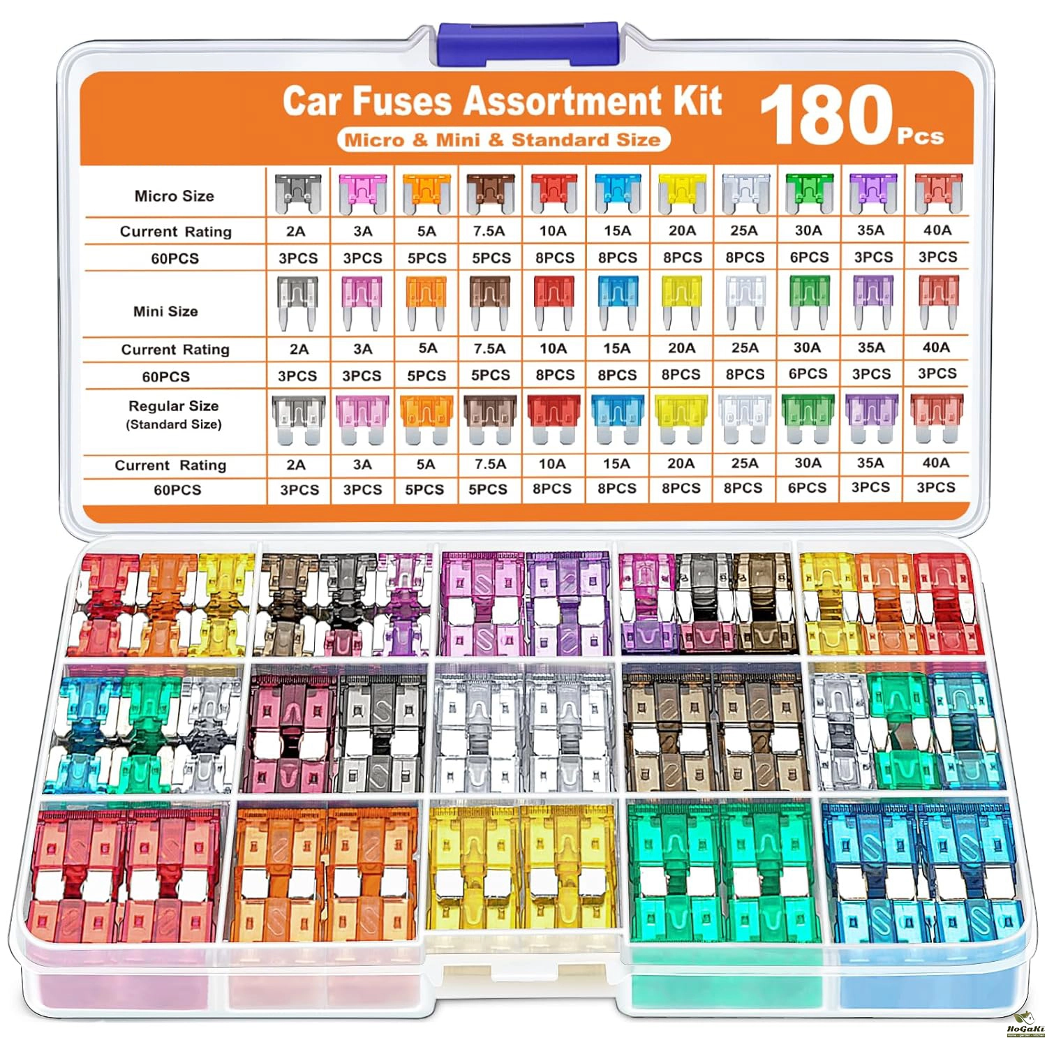 180Pcs Car Fuses Assorted Kit, 60 Mini Blade Car Fuse + 60 Standard Fuse Automotive + 60 Micro Fuse + Fuse Puller –11 Specifications Mixed Auto Fuse: 2Amp 3A 5A 7.5A 10A 15A 20A 25A 30A 35A 40A