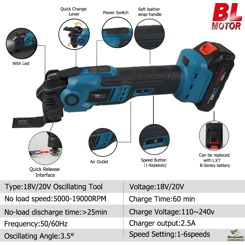 170W Electric Cordless Oscillator, Home Pruning Saw Multi-function Trimmer/Shovel/Cutting Saw Tools For 18V/21V Makita Battery