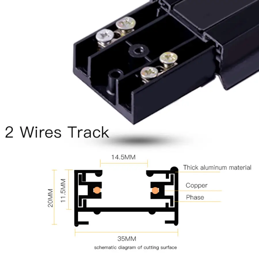Plastic Track Rail 0.5M 1M 2 wire Led Track Light Rails Straight/L Connector Jointer Led Rail For Store Home Spotlight Lighting